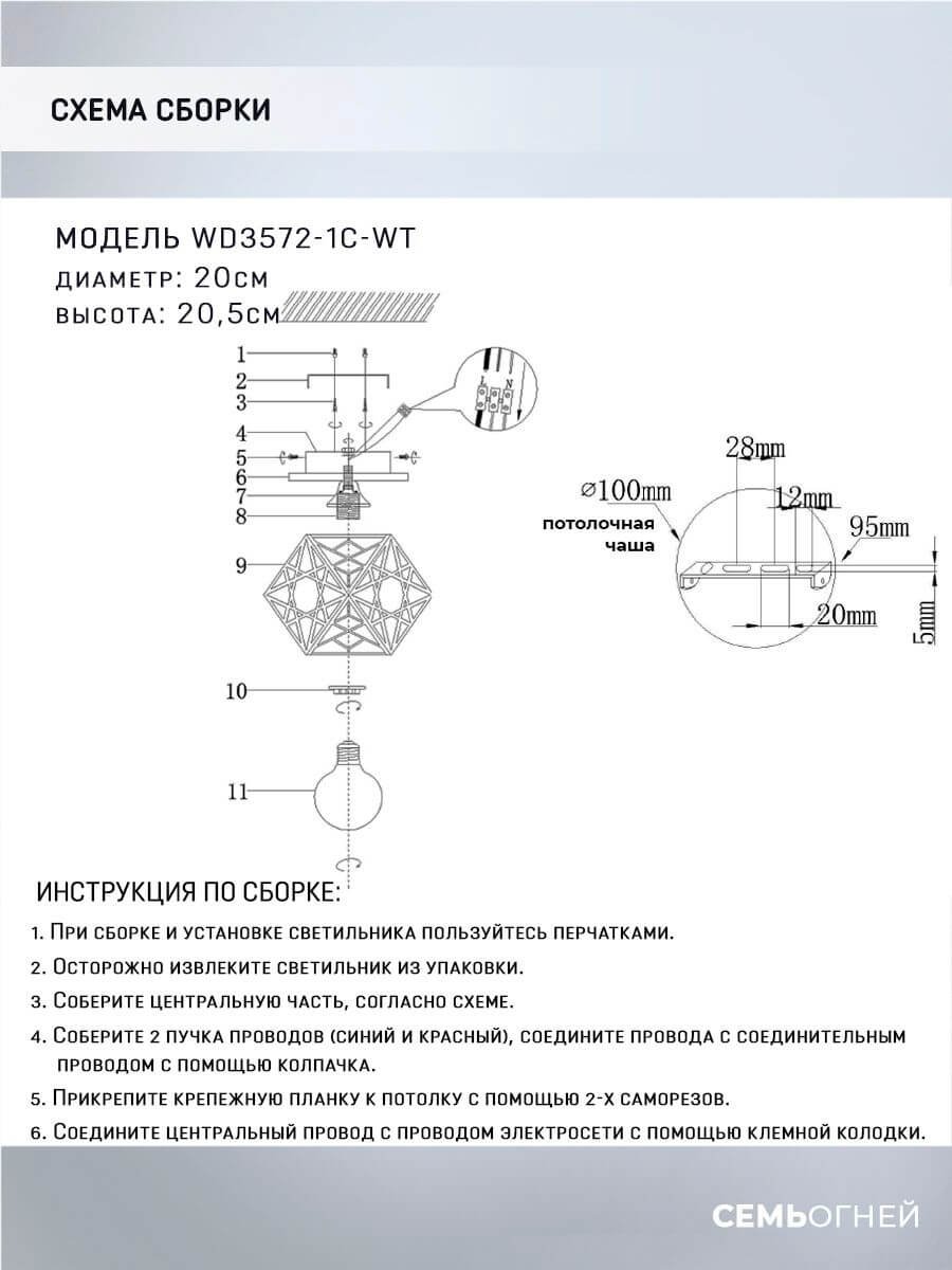 Элегантная модель WD3572/1C-WT от российской компании Seven Fires относится к коллекции Aland и отлично подойдет для установки на низкий потолок прихожей, оформленной в скандинавском стиле. Потолочный светильник Seven Fires Aland WD3572/1C-WT с плафонами в виде многогранника осветит помещение площадью 3 кв. м. Производитель Seven Fires рекомендует использовать для устройства лампы накаливания с цоколем E27 и мощностью 60 W. Прибор произведен с использованием материалов: дерево и металл и может использоваться для натяжного потолка. Основным цветом товара является Белый и Дерево. Потолочный светильник WD3572/1C-WT продается по цене 2160 руб. Торопитесь сделать заказ в интернет-магазине Top Otdelka.