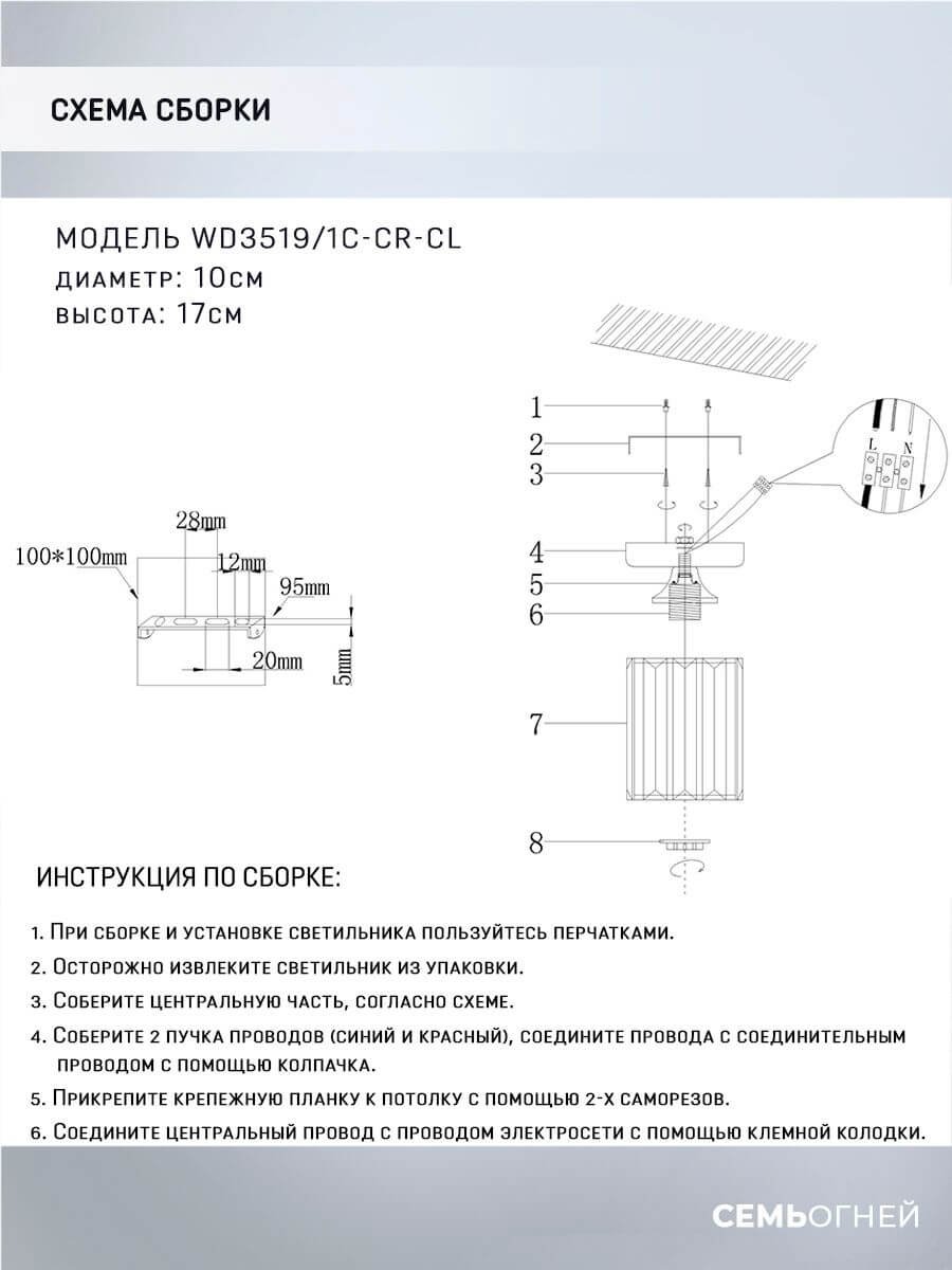 Изумительная модель WD3519/1C-CR-CL от российской компании Seven Fires относится к коллекции Netta и отлично подойдет для установки на низкий потолок спальни, оформленной в стиле модерн. Потолочный светильник Seven Fires Netta WD3519/1C-CR-CL с прямоугольными плафонами осветит помещение площадью 3 кв. м. Производитель Seven Fires рекомендует использовать для устройства лампы накаливания с цоколем E27 и мощностью 60 W. Прибор произведен с использованием материалов: хрусталь и металл и может использоваться для натяжного потолка. Основным цветом товара является Хромовый, Серебристо-стальной и Прозрачный. Торопитесь сделать заказ в интернет-магазине Top Otdelka.