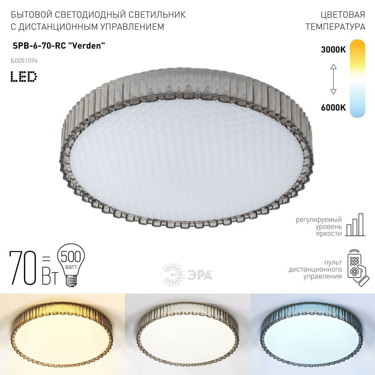Незаурядная модель SPB-6-70-RC Verden от российской компании ЭРА относится к коллекции Классик с ДУ и отлично подойдет для установки на низкий потолок в гостиной, оформленной в стиле хай-тек. Потолочный светодиодный светильник ЭРА Классик с ДУ SPB-6-70-RC Verden Б0051094 с круглыми плафонами осветит помещение площадью 26 кв. м. холодным светом. Осветительный элемент встроен в конструкцию и не требует приобретения дополнительных лампочек. Прибор произведен с использованием материалов: пластик и металл и может использоваться для натяжного потолка. В комплект поставки входит пульт дистанционного управления. Основным цветом товара является Белый и Черный. Потолочный светодиодный светильник SPB-6-70-RC Verden Б0051094 с диммером продается по цене 5896 руб. Торопитесь сделать заказ в интернет-магазине Top Otdelka.