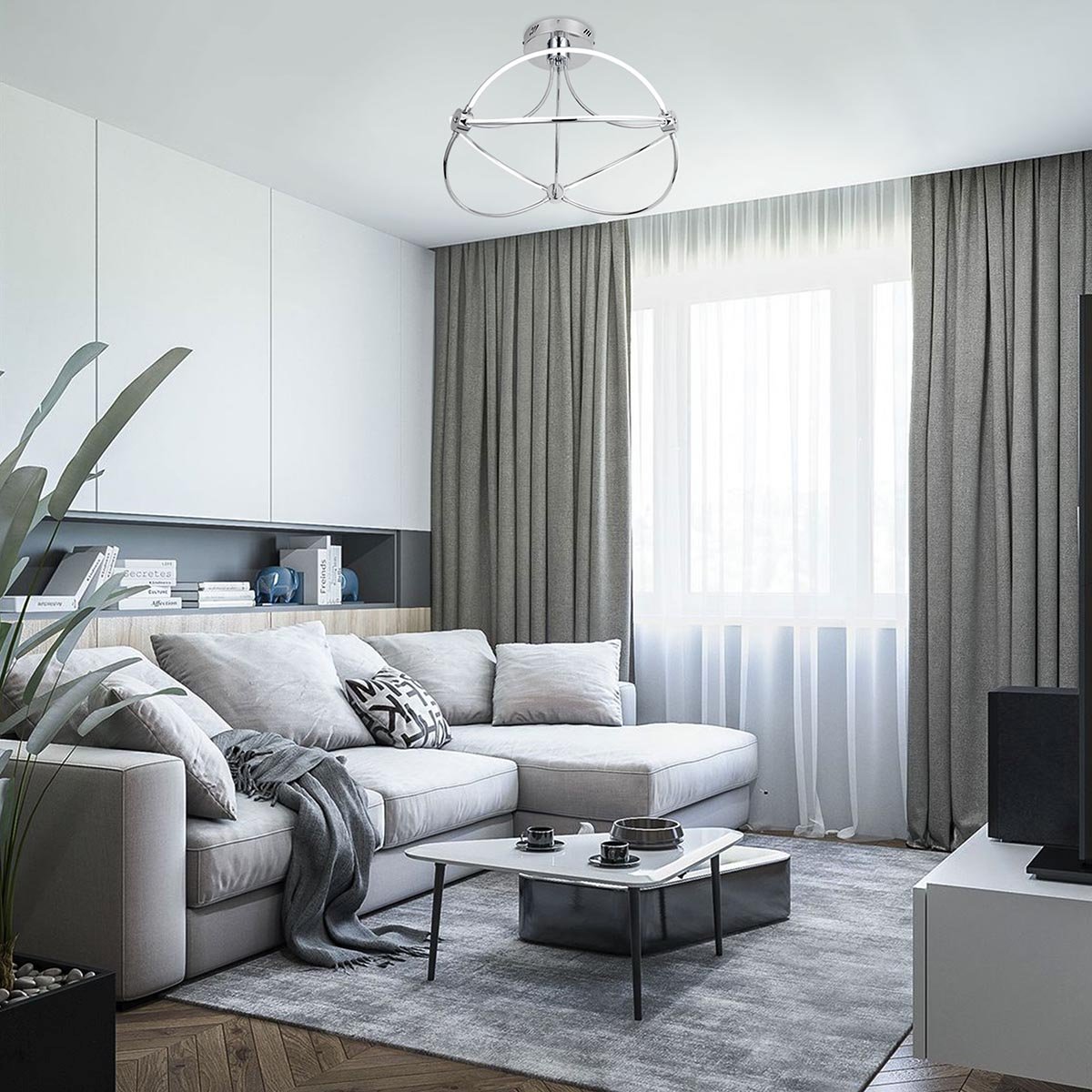Элегантная модель 90246/6 хром от российской компании Eurosvet относится к коллекции Petto и отлично подойдет для установки на потолок в гостиной, оформленной в стиле хай-тек. Осветительный элемент встроен в конструкцию и не требует приобретения дополнительных лампочек. Прибор произведен с использованием материала: металл и может использоваться для натяжного потолка. В комплект поставки входит пульт дистанционного управления. Основным цветом товара является Хромовый, Серебристо-стальной и Серебристый. Потолочный светодиодный светильник 90246/6 хром с диммером продается по цене 19100 руб. Торопитесь сделать заказ в интернет-магазине Top Otdelka.
