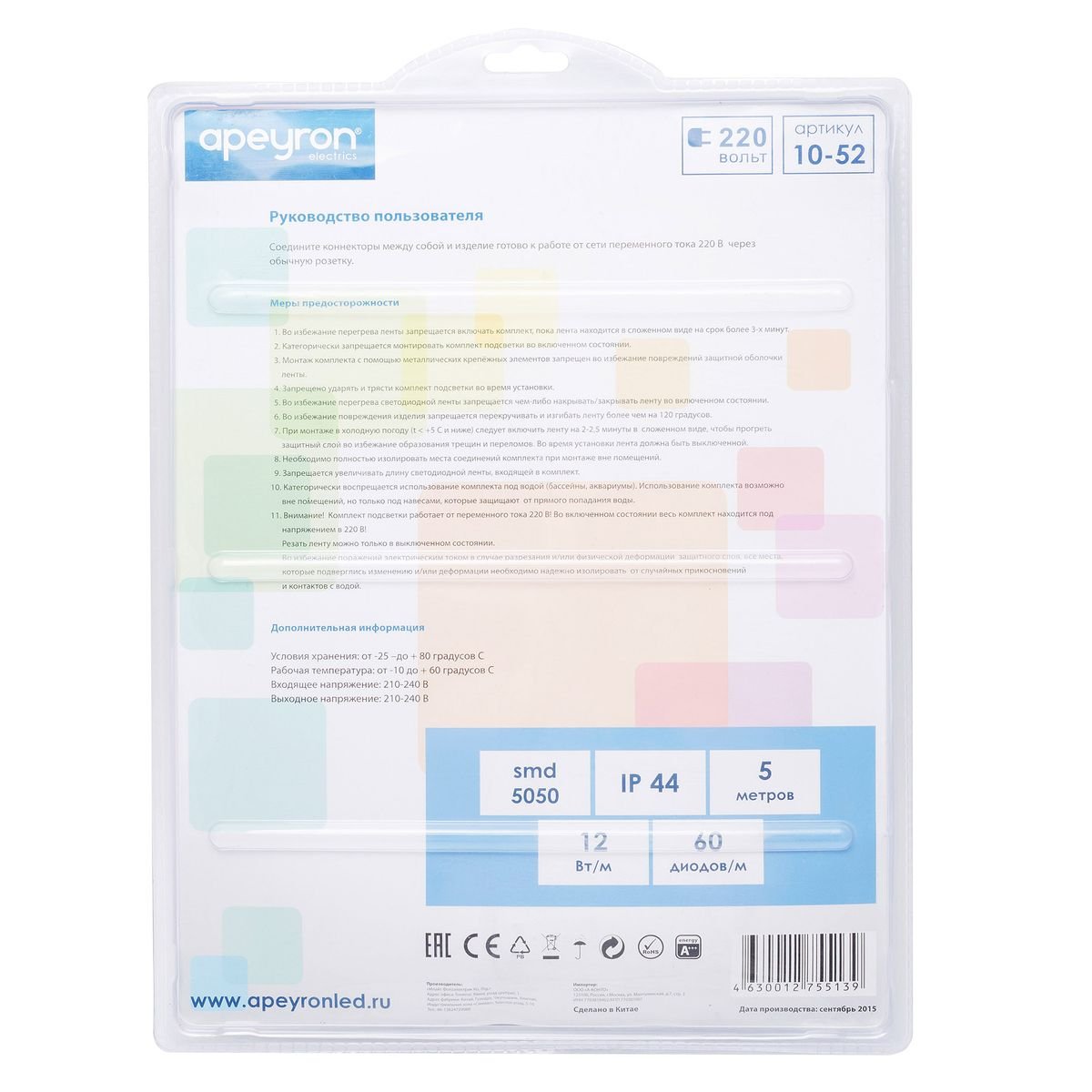 На данной странице нашего сайта вы можете ознакомиться с продукцией компании Apeyron, товаром под названием Светодиодная влагозащищенная лента Apeyron 12W/m 60LED/m 2835SMD разноцветная 5M 10-52. Интернет-магазин Top Otdelka доставит Ваш заказ по Москве, Санкт-Петербургу и всей России Купить представленную модель из раздела «Светодиодная подсветка» можно по цене 3764 руб.