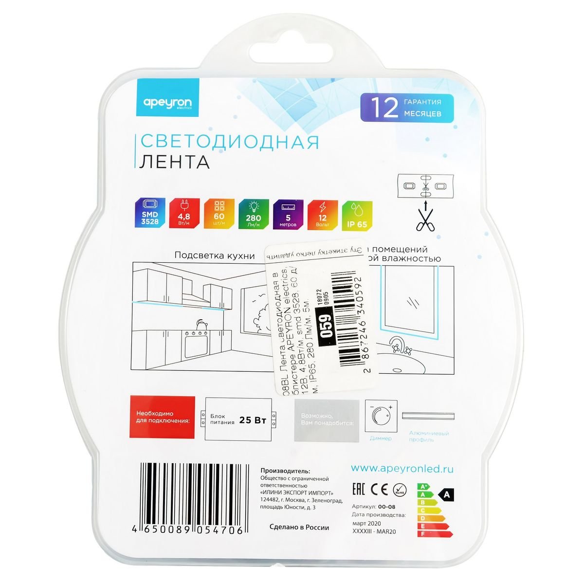 На данной странице нашего сайта вы можете ознакомиться с продукцией компании Apeyron, товаром под названием Светодиодная влагозащищенная лента Apeyron 4,8W/m 60LED/m 3528SMD холодный белый 5M 08BL. Интернет-магазин Top Otdelka доставит Ваш заказ по Москве, Санкт-Петербургу и всей России Купить представленную модель из раздела «Светодиодная подсветка» можно по цене 1128 руб.