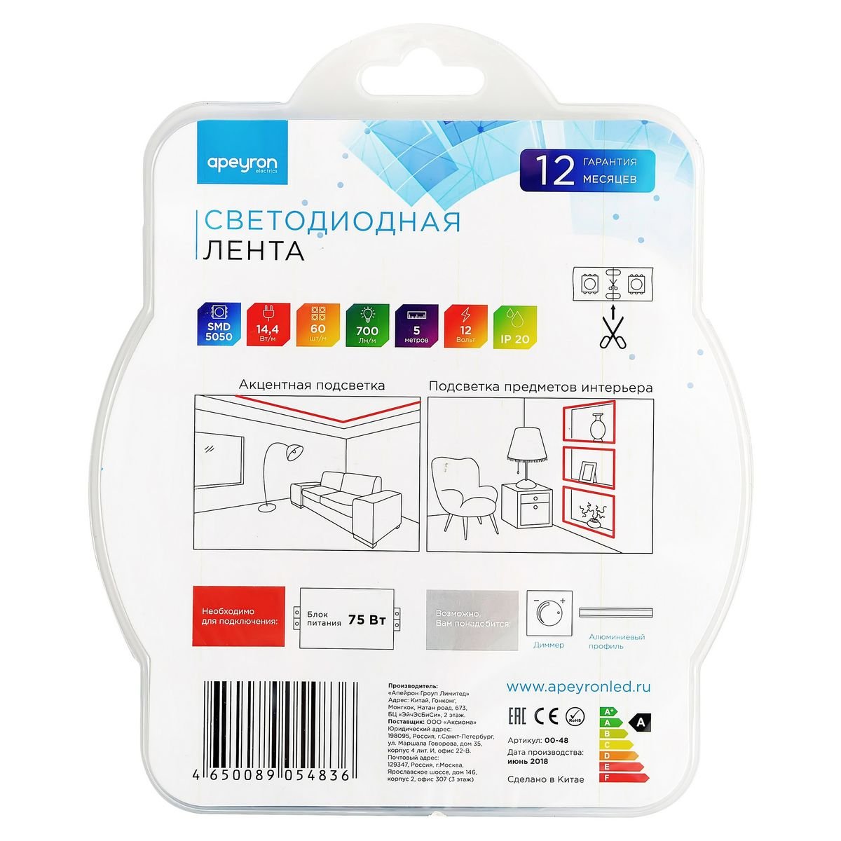 На данной странице нашего сайта вы можете ознакомиться с продукцией компании Apeyron, товаром под названием Светодиодная лента Apeyron 14,4W/m 60LED/m 5050SMD красный 5M 48BL. Интернет-магазин Top Otdelka доставит Ваш заказ по Москве, Санкт-Петербургу и всей России Купить представленную модель из раздела «Светодиодная подсветка» можно по цене 1335 руб.