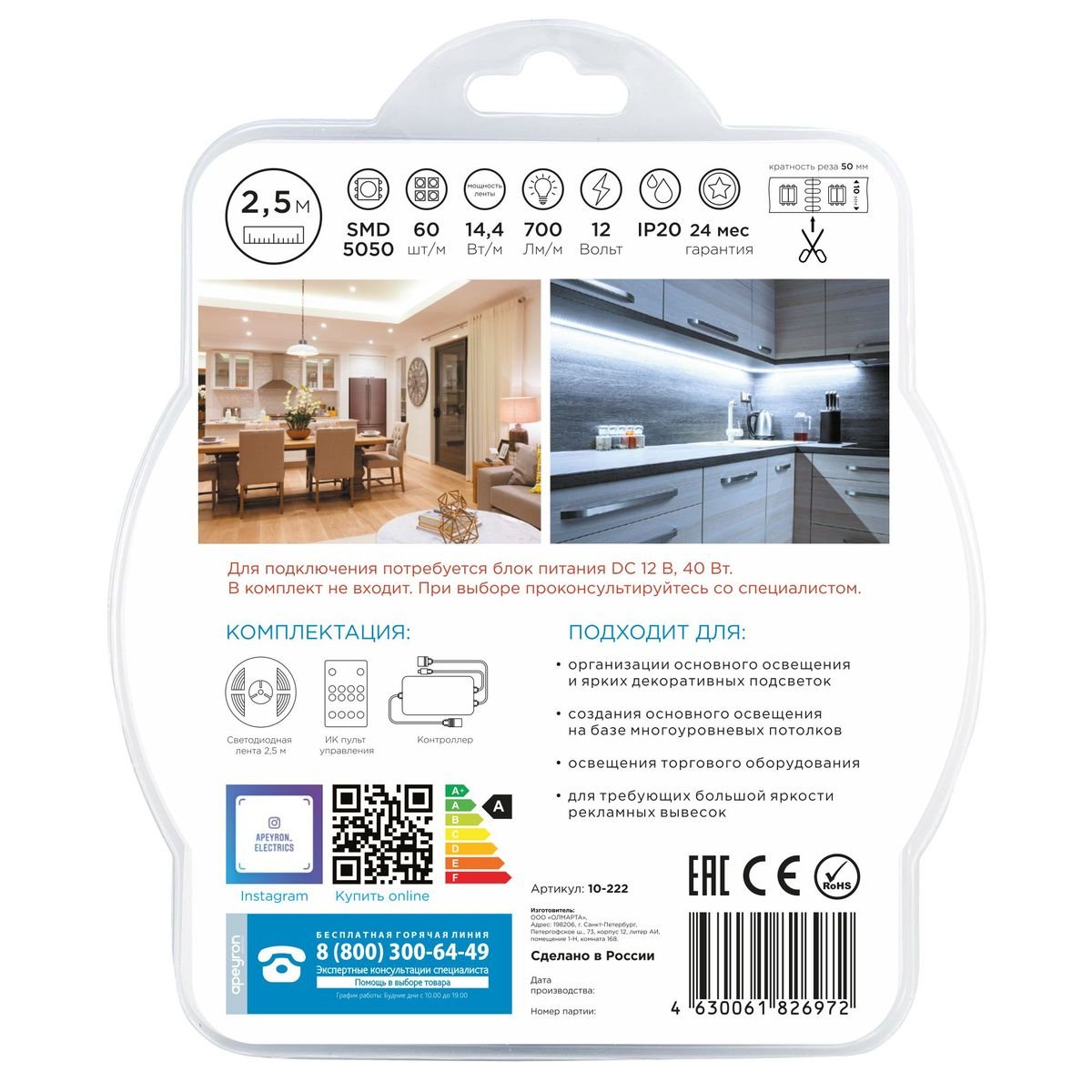 На данной странице нашего сайта вы можете ознакомиться с продукцией компании Apeyron, товаром под названием Светодиодная лента Apeyron 14,4W/m 60LED/m 5050SMD теплый белый/холодный белый 2,5M 10-222. Интернет-магазин Top Otdelka доставит Ваш заказ по Москве, Санкт-Петербургу и всей России Купить представленную модель из раздела «Светодиодная подсветка» можно по цене 1489 руб.