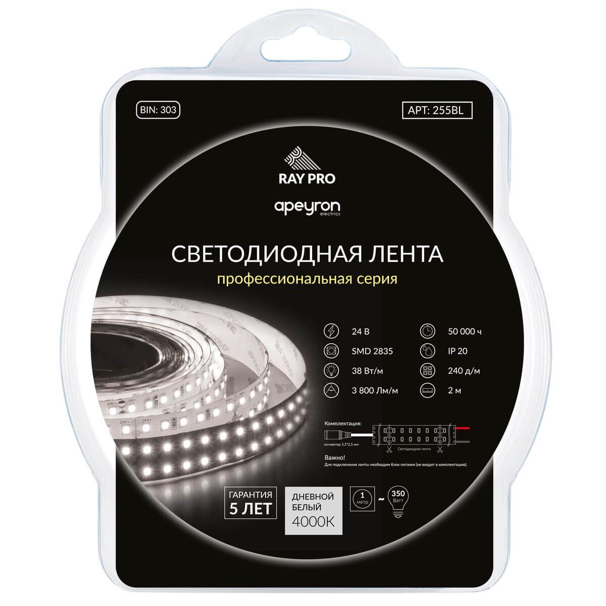 На данной странице нашего сайта вы можете ознакомиться с продукцией компании Apeyron, товаром под названием Светодиодная лента Apeyron 38W/m 240Led/m 2835SMD дневной белый 2M 255BL. Интернет-магазин Top Otdelka доставит Ваш заказ по Москве, Санкт-Петербургу и всей России Купить представленную модель из раздела «Светодиодная подсветка» можно по цене 1147 руб.