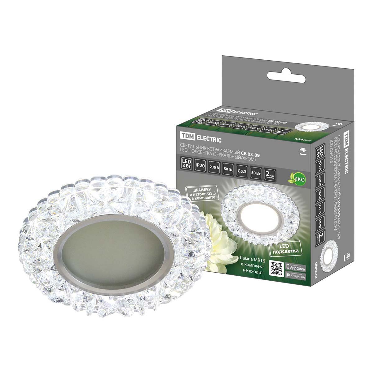 Утонченная модель SQ0359-0137 от российской компании TDM Electric относится к коллекции СВ Led подсветка и отлично подойдет для установки врезной спальни, оформленной в стиле модерн. Производитель TDM Electric рекомендует использовать для устройства светодиодные лампы с цоколем G5.3 и мощностью 50 W. Прибор произведен с использованием материалов: пластик и сталь. Основным цветом товара является Зеркальный и Серебристо-стальной. Встраиваемый светильник СВ 03-09 SQ0359-0137 продается по цене 293 руб. Торопитесь сделать заказ в интернет-магазине Top Otdelka.