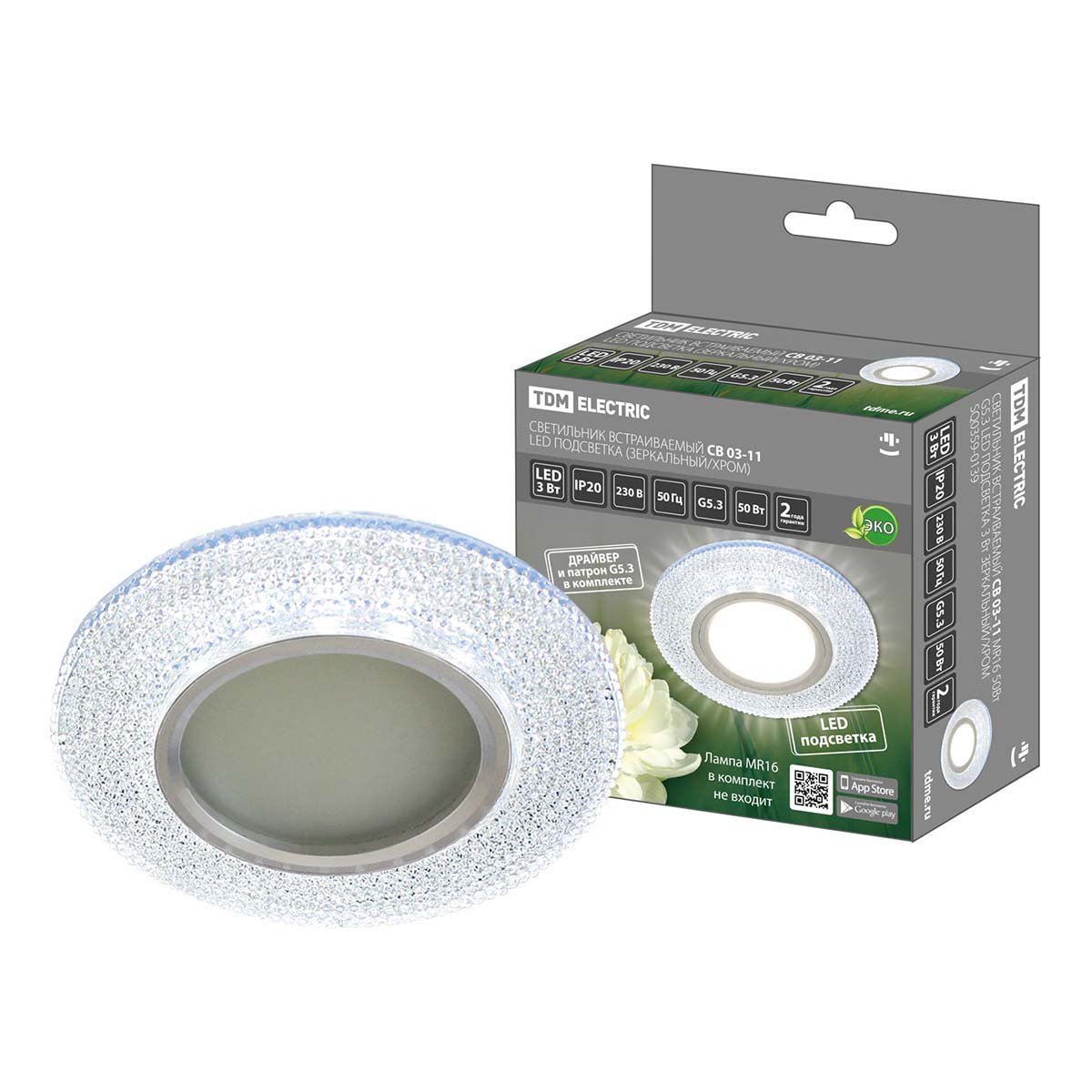 Превосходная модель SQ0359-0139 от российской компании TDM Electric относится к коллекции СВ Led подсветка и отлично подойдет для установки врезной спальни, оформленной в стиле модерн. Производитель TDM Electric рекомендует использовать для устройства светодиодные лампы с цоколем G5.3 и мощностью 50 W. Прибор произведен с использованием материалов: пластик и сталь. Основным цветом товара является Зеркальный и Серебристо-стальной. Встраиваемый светильник СВ 03-11 SQ0359-0139 продается по цене 293 руб. Торопитесь сделать заказ в интернет-магазине Top Otdelka.