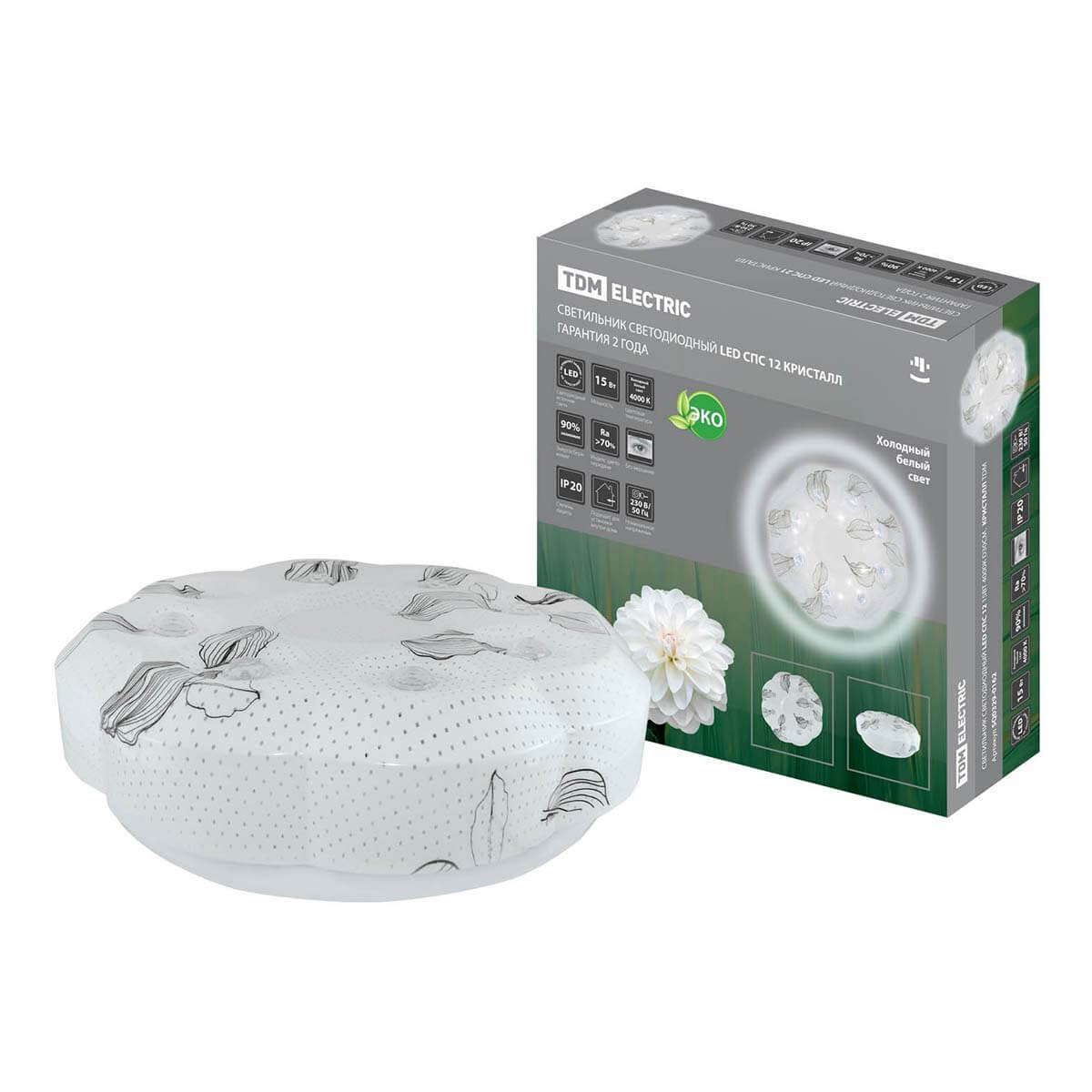 Стильная модель SQ0329-0162 от российской компании TDM Electric относится к коллекции LED СПС и отлично подойдет для установки на потолок, на стену кухни, оформленной в стиле прованс. Осветительный элемент встроен в конструкцию и не требует приобретения дополнительных лампочек. Прибор произведен с использованием материалов: стекло и сталь и может использоваться для натяжного потолка. Основным цветом товара является Белый. Настенно-потолочный светодиодный светильник Кристалл 12 SQ0329-0162 продается по цене 878 руб. Торопитесь сделать заказ в интернет-магазине Top Otdelka.