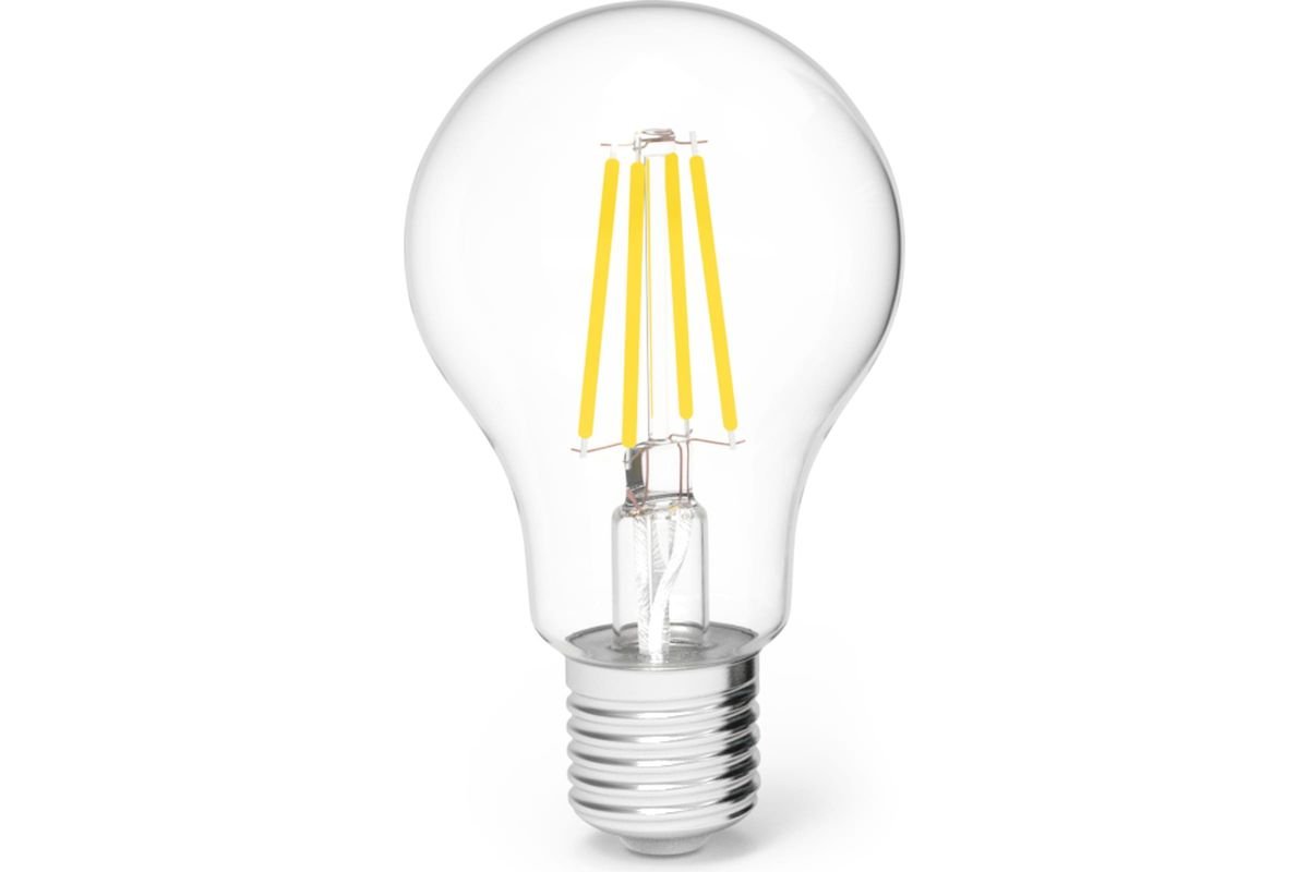 Светодиодная лампочка в форме груши с цоколем E27 и размерами 105 мм по высоте и диаметром в 60 мм обладает мощностью в 18 W, благодаря чему она может осветить 6 кв. м. Цветовая температура – 2700 К, т.е. теплый свет, создающий атмосферу уюта. Изделие рассчитано на использование в сети с переменным напряжением в 220-240В.