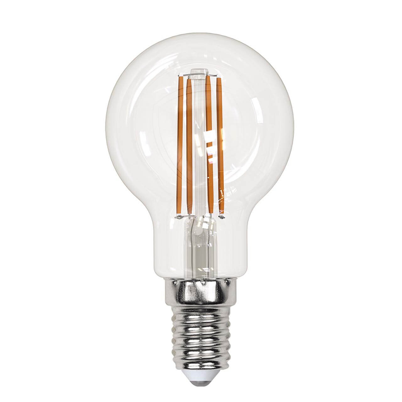 Светодиодная лампочка в форме шара с цоколем E14 и размерами 82 мм по высоте и диаметром в 45 мм обладает мощностью в 13 W, благодаря чему она может осветить 4.3 кв. м. Цветовая температура – 3000 К, т.е. теплый свет, создающий атмосферу уюта. Изделие рассчитано на использование в сети с переменным напряжением в 220-240В.