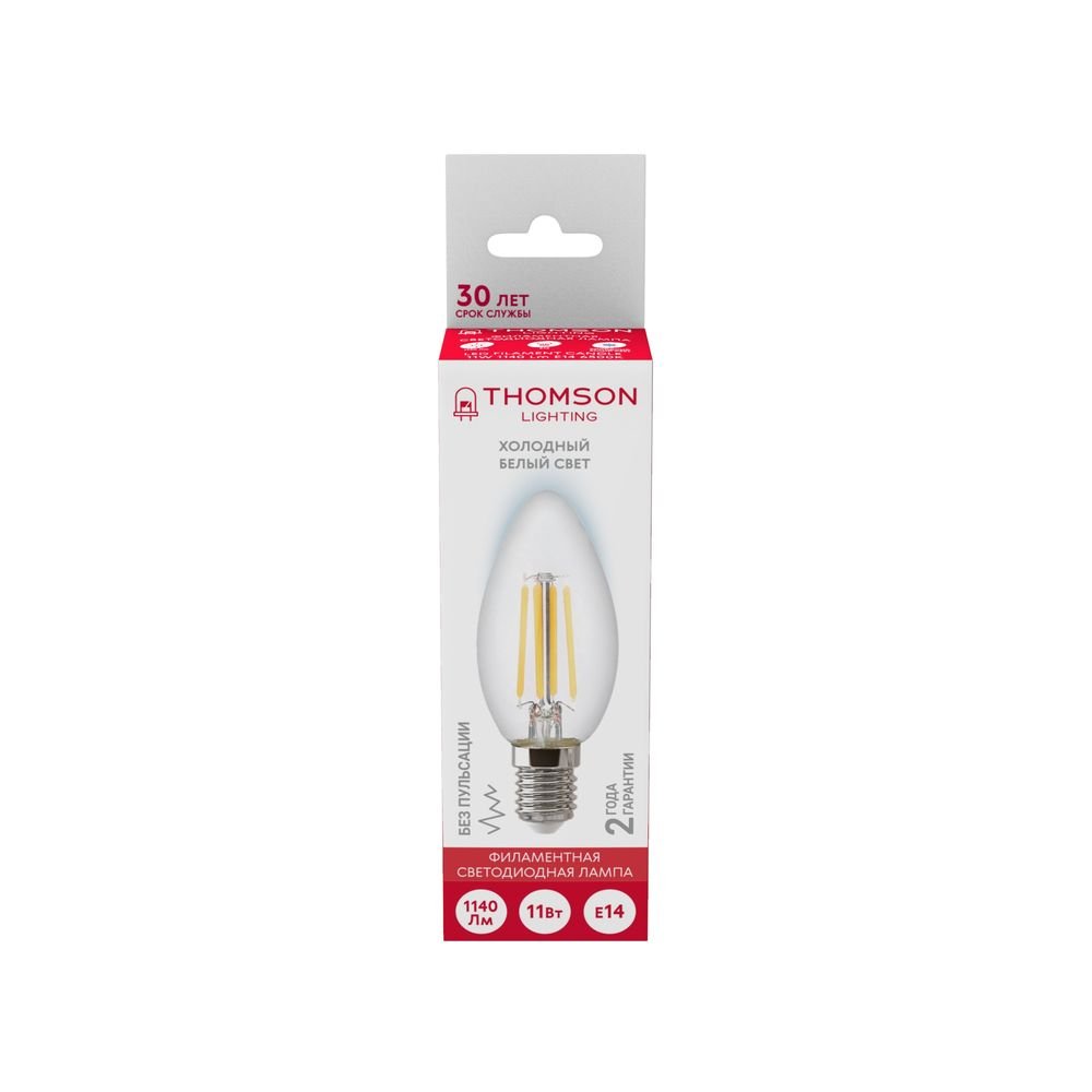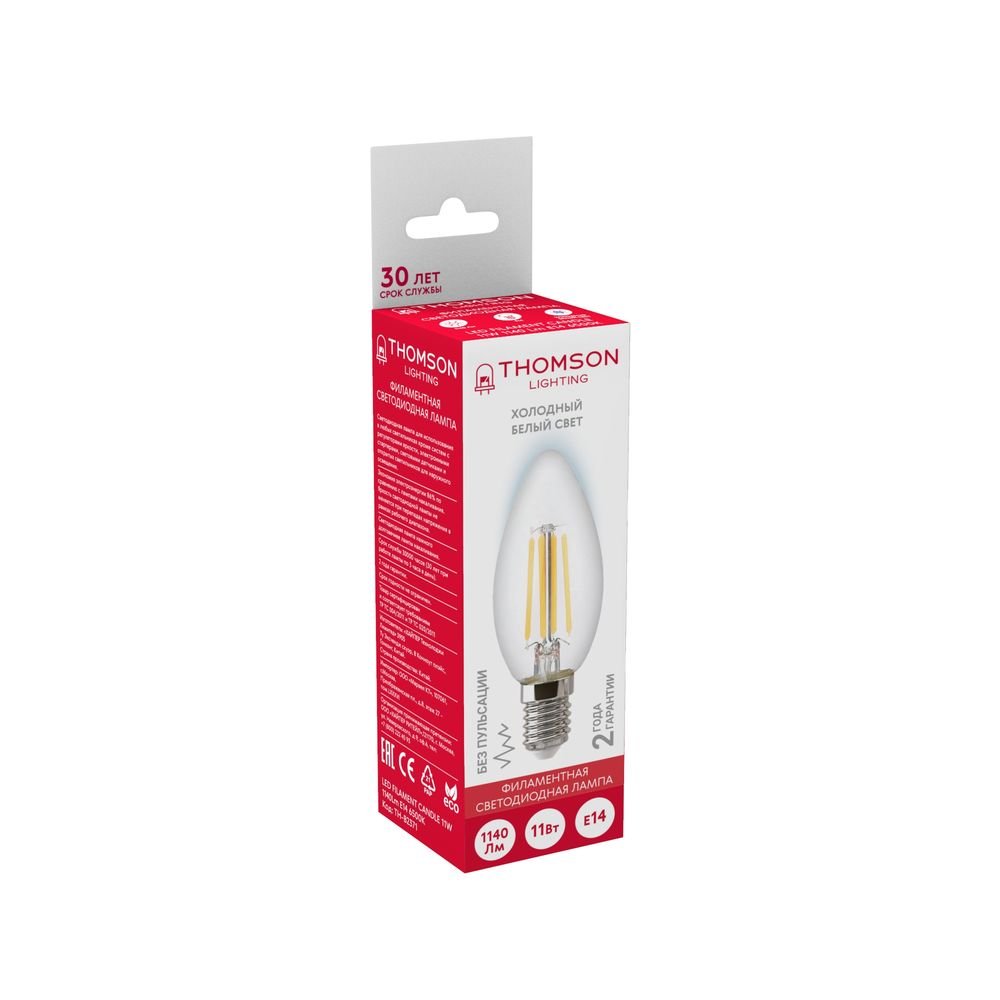 Светодиодная лампочка в форме свечи с цоколем E14 и размерами 110 мм по высоте и диаметром в 40 мм обладает мощностью в 11 W, благодаря чему она может осветить 4 кв. м. Цветовая температура – 6500 К, т.е. холодный свет синего оттенка (не рекомендуется для применения на кухне, так как искажает цвет готовых блюд). Изделие рассчитано на использование в сети с переменным напряжением в 170-265В.