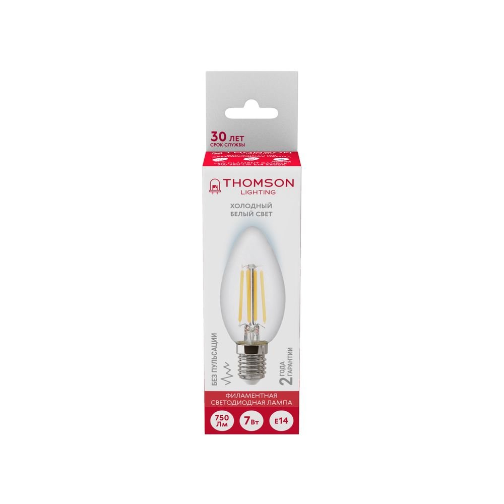 Светодиодная лампочка в форме свечи с цоколем E14 и размерами 110 мм по высоте и диаметром в 40 мм обладает мощностью в 7 W, благодаря чему она может осветить 3 кв. м. Цветовая температура – 6500 К, т.е. холодный свет синего оттенка (не рекомендуется для применения на кухне, так как искажает цвет готовых блюд). Изделие рассчитано на использование в сети с переменным напряжением в 170-265В.