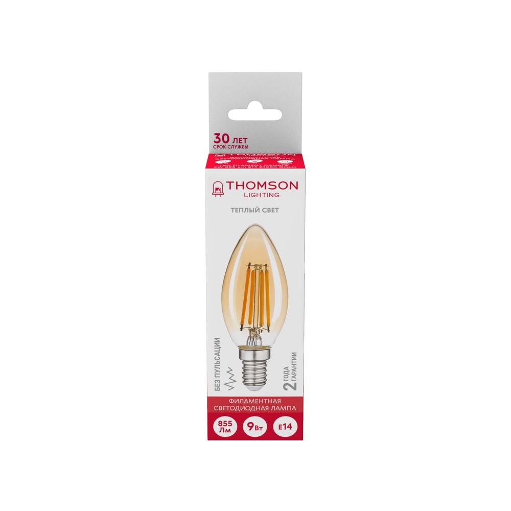Светодиодная лампочка в форме свечи с цоколем E14 и размерами 110 мм по высоте и диаметром в 40 мм обладает мощностью в 9 W, благодаря чему она может осветить 4 кв. м. Цветовая температура – 2400 К, т.е. теплый свет, создающий атмосферу уюта. Изделие рассчитано на использование в сети с переменным напряжением в 170-265В.