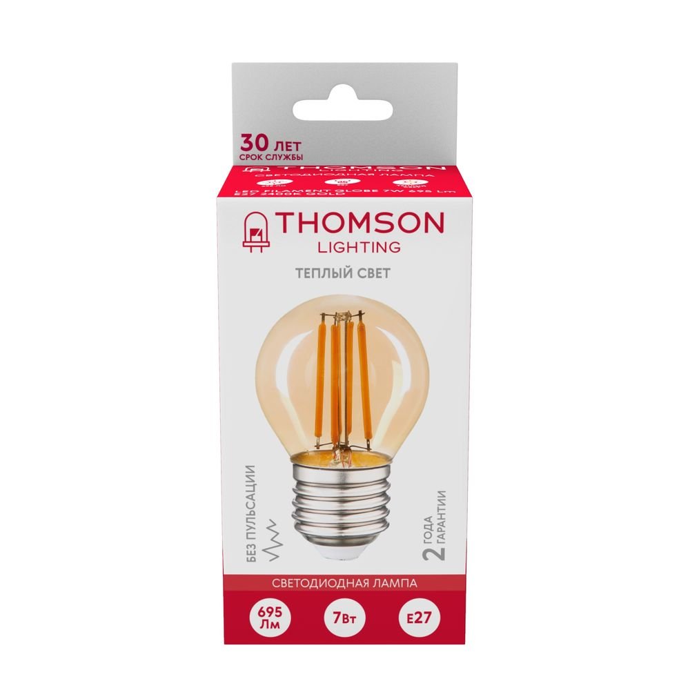 Светодиодная лампочка в форме шара с цоколем E27 и размерами 80 мм по высоте и диаметром в 50 мм обладает мощностью в 7 W, благодаря чему она может осветить 3 кв. м. Цветовая температура – 2400 К, т.е. теплый свет, создающий атмосферу уюта. Изделие рассчитано на использование в сети с переменным напряжением в 170-265В.