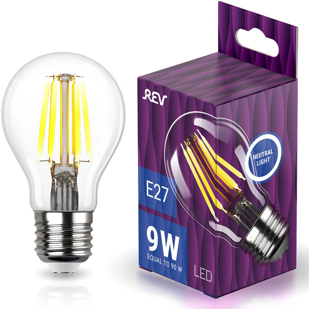 Светодиодная лампочка в форме груши с цоколем E27 и размерами 155 мм по высоте и диаметром в 60 мм обладает мощностью в 9 W, благодаря чему она может осветить 3 кв. м. Цветовая температура – 4000 К, т.е. белый свет, подходящий для рабочего настроя (не рекомендуется для детской комнаты). Изделие рассчитано на использование в сети с переменным напряжением в 230В.