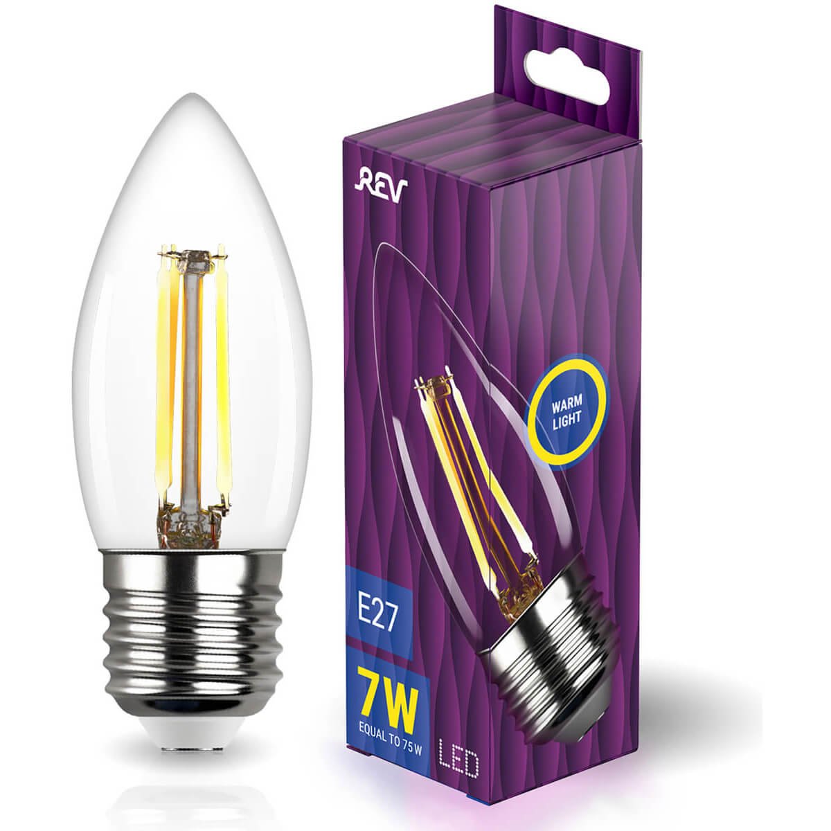Светодиодная лампочка в форме свечи с цоколем E27 и размерами 100 мм по высоте и диаметром в 35 мм обладает мощностью в 7 W, благодаря чему она может осветить 2.3 кв. м. Цветовая температура – 2700 К, т.е. теплый свет, создающий атмосферу уюта. Изделие рассчитано на использование в сети с переменным напряжением в 230В.