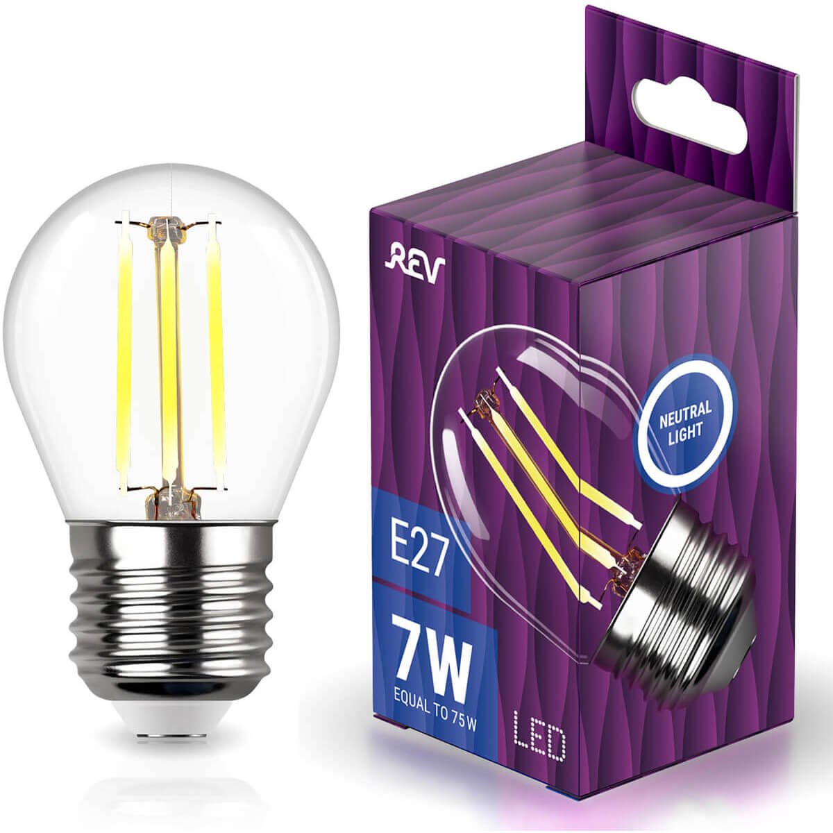 Светодиодная лампочка в форме шара с цоколем E27 и размерами 90 мм по высоте и диаметром в 45 мм обладает мощностью в 7 W, благодаря чему она может осветить 2.3 кв. м. Цветовая температура – 4000 К, т.е. белый свет, подходящий для рабочего настроя (не рекомендуется для детской комнаты). Изделие рассчитано на использование в сети с переменным напряжением в 230В.