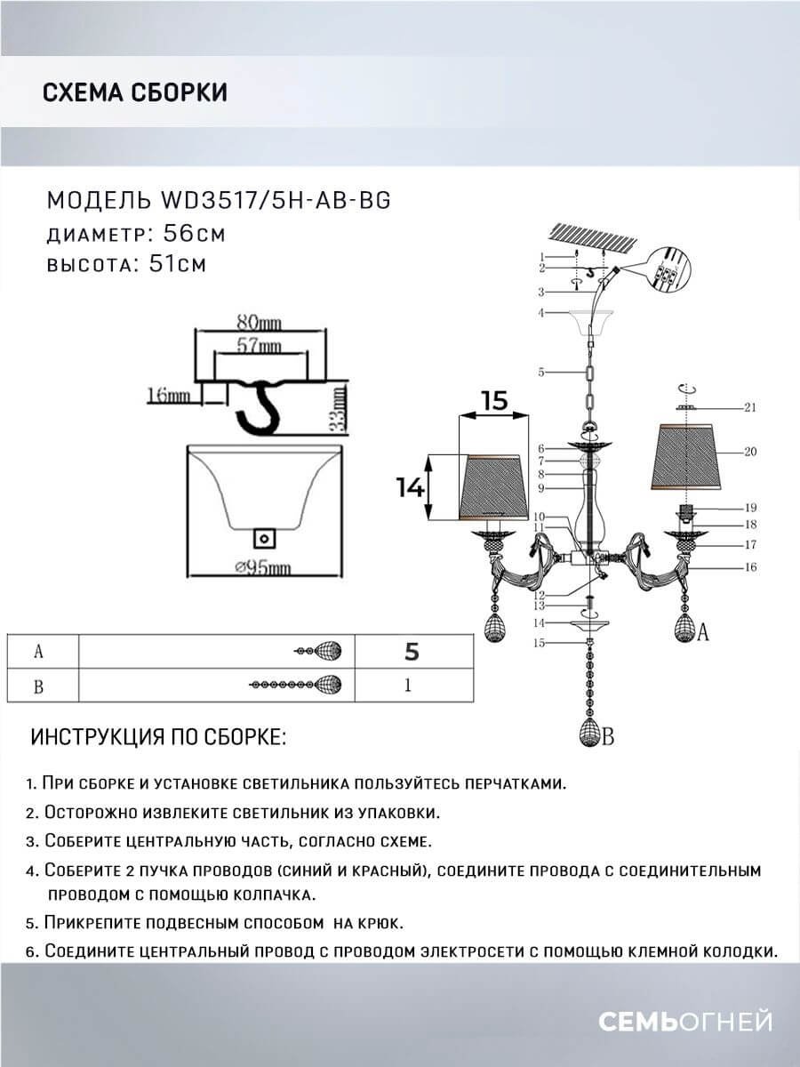 Особенная модель WD3517/5H-AB-BG от российской компании Seven Fires относится к коллекции Sejnt и отлично подойдет для установки на потолок спальни, оформленной в классическом стиле. Подвесная люстра Seven Fires Sejnt WD3517/5H-AB-BG с плафонами-конусами осветит помещение площадью 15 кв. м. Производитель Seven Fires рекомендует использовать для устройства лампы накаливания с цоколем E14 и мощностью 60 W. Прибор произведен с использованием материалов: текстиль, металл и ткань и может использоваться для натяжного потолка. Основным цветом товара является Бежевый и Античная бронза. Подвесная люстра WD3517/5H-AB-BG продается по цене 6820 руб. Торопитесь сделать заказ в интернет-магазине Top Otdelka.