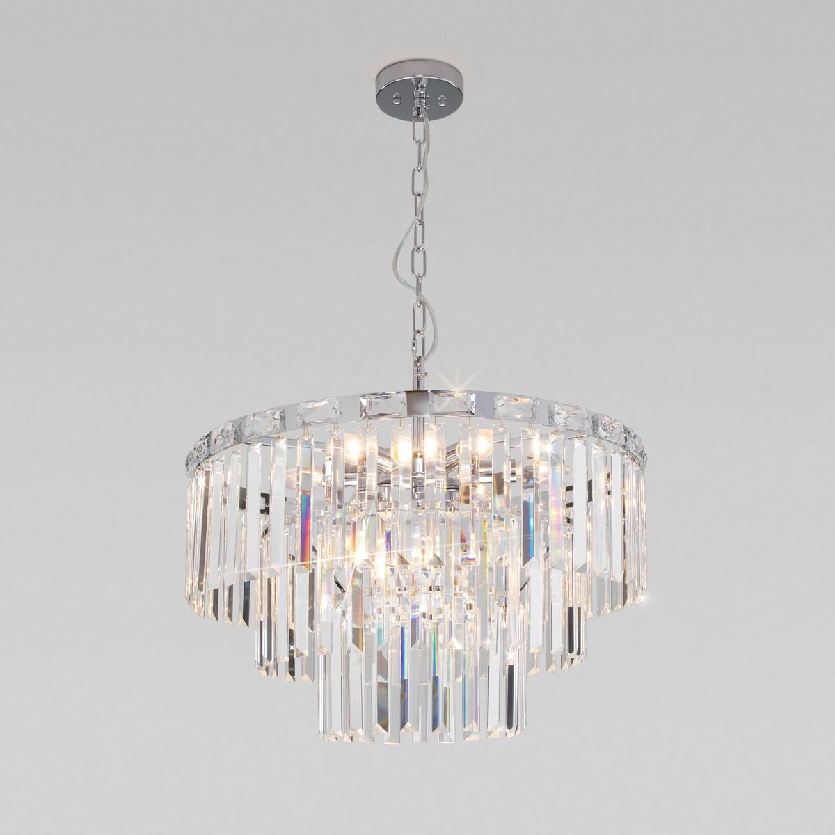 Великолепная модель 10130/8 хром/прозрачный хрусталь Strotskis от российской компании Eurosvet относится к коллекции Elegante и отлично подойдет для установки на потолок в гостиной, оформленной в стиле модерн. Подвесная люстра Eurosvet Elegante 10130/8 хром/прозрачный хрусталь Strotskis с плафонами-конусами осветит помещение площадью 14 кв. м. Производитель Eurosvet рекомендует использовать для устройства лампы накаливания с цоколем E14 и мощностью 60 W. Прибор произведен с использованием материалов: хрусталь и металл и может использоваться для натяжного потолка. Основным цветом товара является Золотой и Прозрачный. Подвесная люстра 10130/8 хром/прозрачный хрусталь Strotskis продается по цене 33900 руб. Торопитесь сделать заказ в интернет-магазине Top Otdelka.