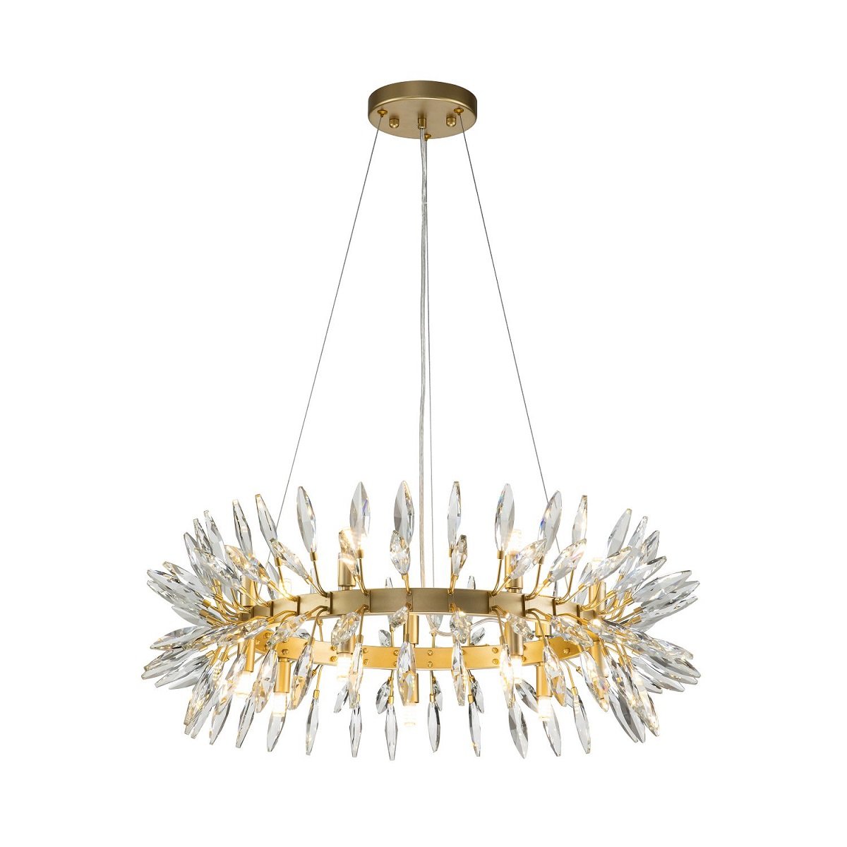 Роскошная модель 4058-14P от немецкой компании Favourite относится к коллекции Rays и отлично подойдет для установки на потолок спальни, оформленной в стиле модерн. Подвесная люстра Favourite Rays 4058-14P с плафонами в форме цветов осветит помещение площадью 23.3 кв. м. Производитель Favourite рекомендует использовать для устройства галогеновые лампы с цоколем G9 и мощностью 25 W. Прибор произведен с использованием материалов: металл и хрусталь и может использоваться для натяжного потолка. Основным цветом товара является Золотой и Прозрачный. Подвесная люстра 4058-14P продается по цене 52900 руб. Торопитесь сделать заказ в интернет-магазине Top Otdelka.