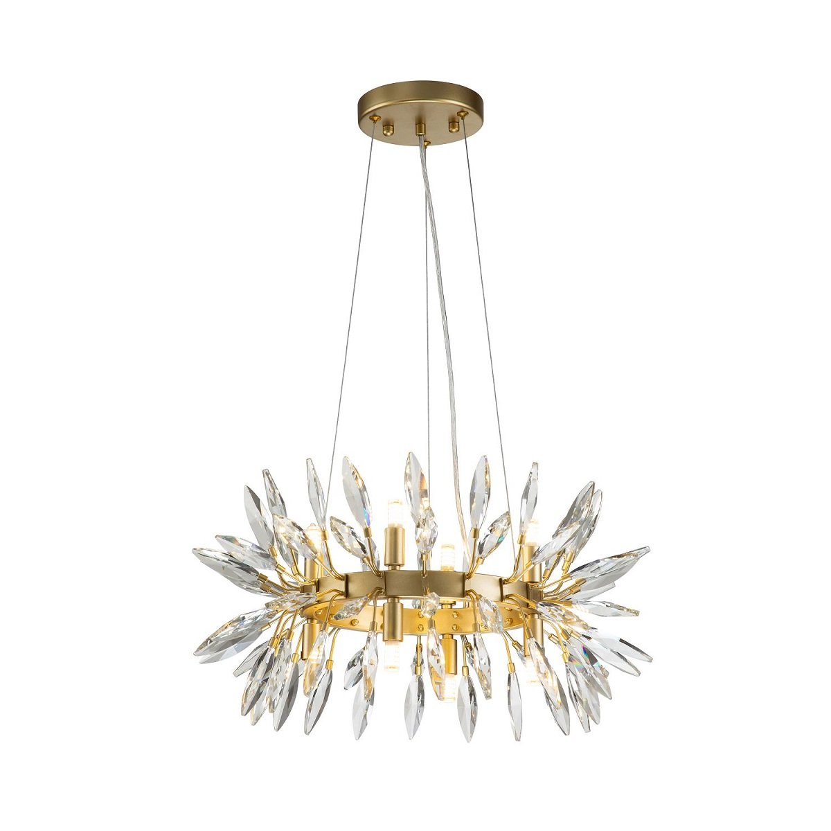 Незаурядная модель 4058-8P от немецкой компании Favourite относится к коллекции Rays и отлично подойдет для установки на потолок спальни, оформленной в стиле модерн. Подвесная люстра Favourite Rays 4058-8P с плафонами в форме цветов осветит помещение площадью 13.3 кв. м. Производитель Favourite рекомендует использовать для устройства галогеновые лампы с цоколем G9 и мощностью 25 W. Прибор произведен с использованием материалов: металл и хрусталь и может использоваться для натяжного потолка. Основным цветом товара является Золотой и Прозрачный. Подвесная люстра 4058-8P продается по цене 36400 руб. Торопитесь сделать заказ в интернет-магазине Top Otdelka.