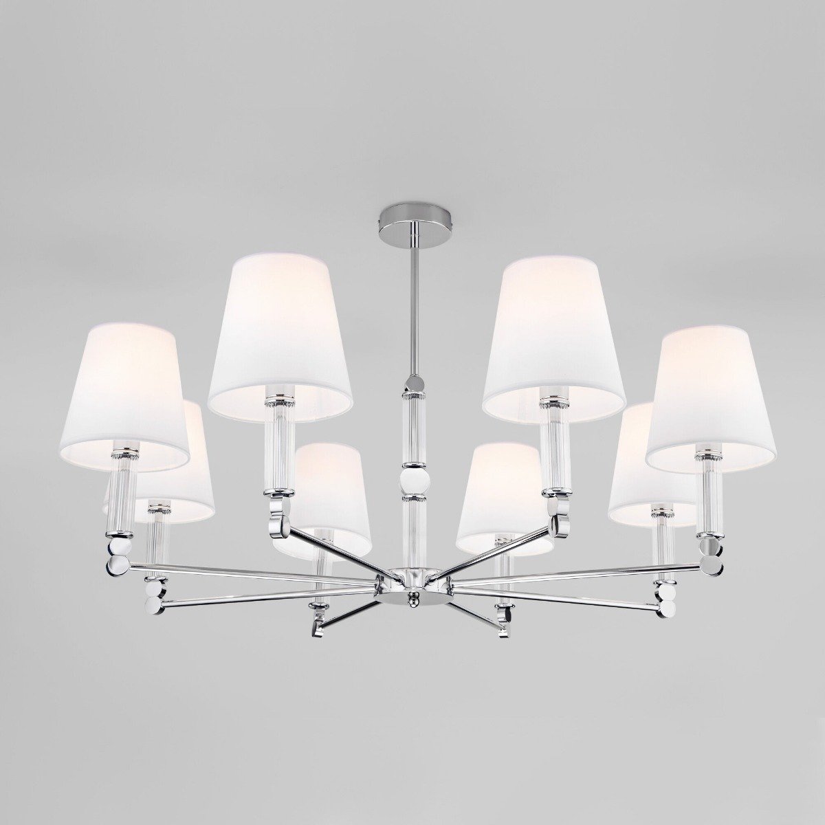 Непревзойденная модель 60145/8 хром от российской компании Eurosvet относится к коллекции Conso и отлично подойдет для установки на потолок в гостиной, оформленной в классическом стиле. Потолочная люстра Eurosvet 60145/8 хром с цилиндрическими плафонами осветит помещение площадью 21.3 кв. м. Производитель Eurosvet рекомендует использовать для устройства лампы накаливания с цоколем E14 и мощностью 40 W. Прибор произведен с использованием материалов: металл и ткань. Основным цветом товара является Хромовый, Серебристо-стальной и Белый. Потолочная люстра 60145/8 хром продается по цене 23200 руб. Торопитесь сделать заказ в интернет-магазине Top Otdelka.