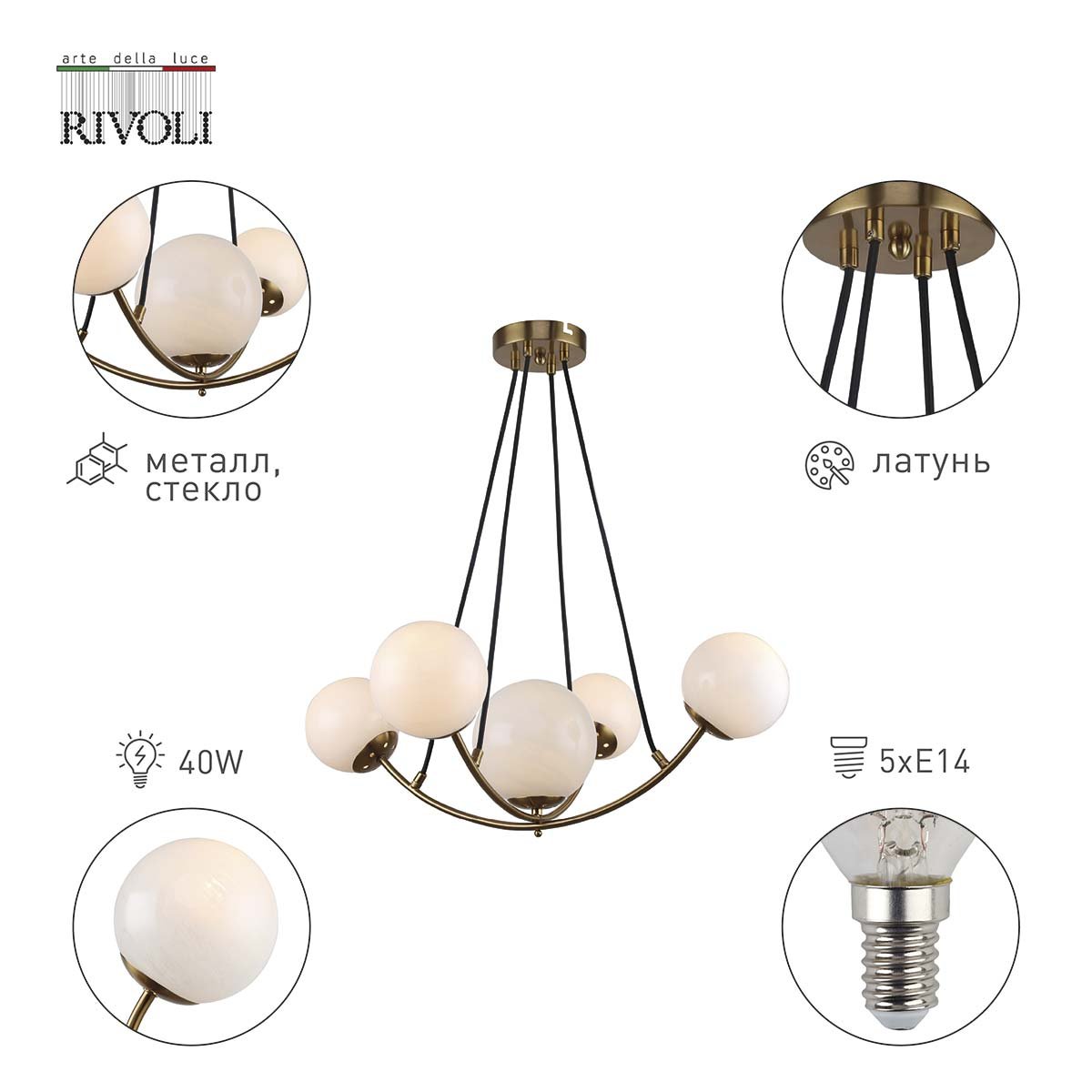 Феноменальная модель 4099-305 от итальянской компании Rivoli относится к коллекции Dina. Подвесная люстра Rivoli Dina 4099-305 Б0055477 осветит помещение площадью 15 кв. м. Производитель Rivoli рекомендует использовать для устройства лампы накаливания с цоколем E14 и мощностью 40 W. Прибор произведен с использованием материалов: стекло и металл и может использоваться для натяжного потолка. Основным цветом товара является Латунный и Белый. Подвесная люстра 4099-305 Б0055477 продается по цене 11427 руб. Торопитесь сделать заказ в интернет-магазине Top Otdelka.