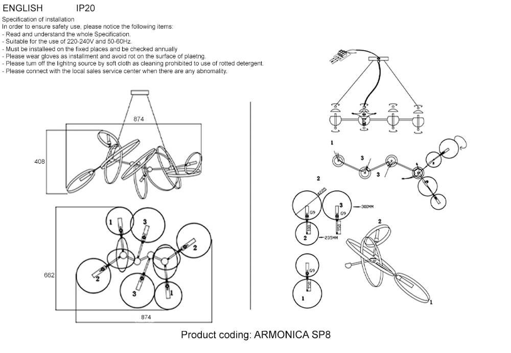 Особенная модель Armonica SP8 Black/Brass V2 от испанской компании Crystal Lux относится к коллекции Armonica и отлично подойдет для установки на потолок в гостиной, оформленной в стиле хай-тек. Производитель Crystal Lux рекомендует использовать для устройства светодиодные лампы с цоколем G9 и мощностью 8 W. Прибор произведен с использованием материалов: стекло и металл и может использоваться для натяжного потолка. Основным цветом товара является Золотой, Черный и Прозрачный. Подвесная люстра Armonica SP8 Black/Brass V2 продается по цене 39900 руб. Торопитесь сделать заказ в интернет-магазине Top Otdelka.