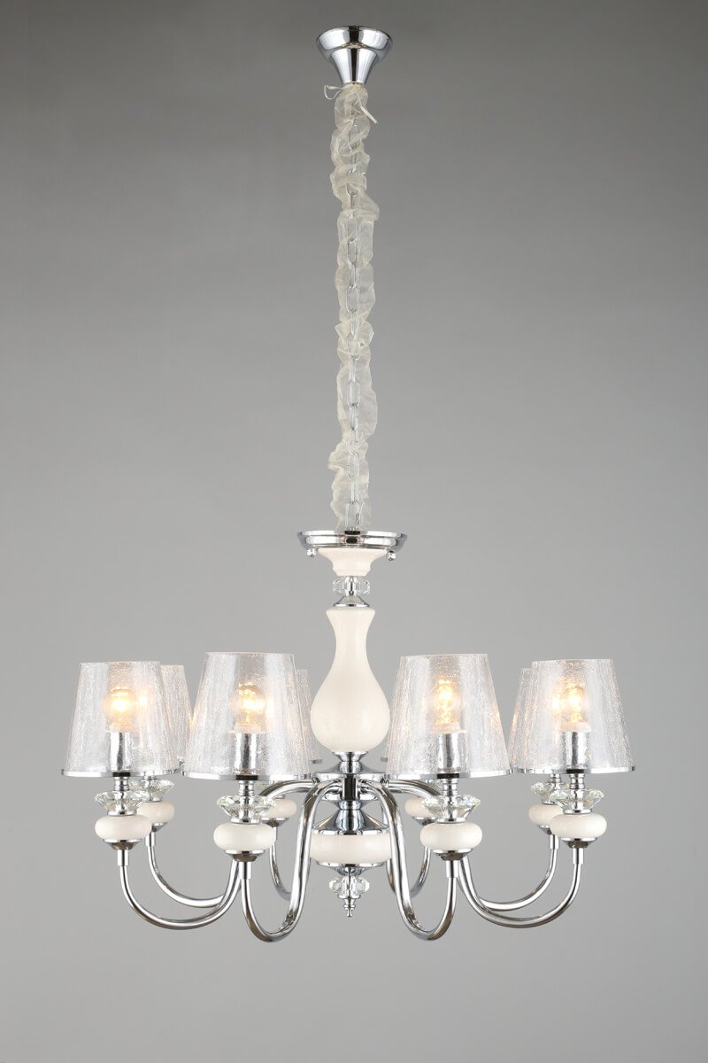 Особенная модель OML-84603-08 от китайской компании Omnilux относится к коллекции Aviano и отлично подойдет для установки на потолок в гостиной, оформленной в классическом стиле. Подвесная люстра Omnilux Aviano OML-84603-08 с плафонами-конусами осветит помещение площадью 17.8 кв. м. Производитель Omnilux рекомендует использовать для устройства лампы накаливания с цоколем E14 и мощностью 40 W. Прибор произведен с использованием материалов: стекло и металл и может использоваться для натяжного потолка. В комплект поставки входят также лампы. Основным цветом товара является Хромовый, Серебристо-стальной и Прозрачный. Подвесная люстра OML-84603-08 продается по цене 39590 руб. Торопитесь сделать заказ в интернет-магазине Top Otdelka.