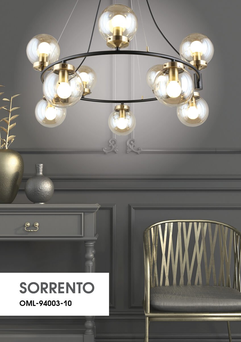 Поразительная модель OML-94003-10 от китайской компании Omnilux относится к коллекции Sorrento и отлично подойдет для установки на потолок в гостиной, оформленной в стиле лофт. Подвесная люстра Omnilux Sorrento OML-94003-10 с плафонами в виде шаров осветит помещение площадью 25 кв. м. Производитель Omnilux рекомендует использовать для устройства светодиодные лампы с цоколем E14 и мощностью 5 W. Прибор произведен с использованием материалов: стекло и металл и может использоваться для натяжного потолка. Основным цветом товара является Черный и Прозрачный. Подвесная люстра OML-94003-10 продается по цене 22110 руб. Торопитесь сделать заказ в интернет-магазине Top Otdelka.