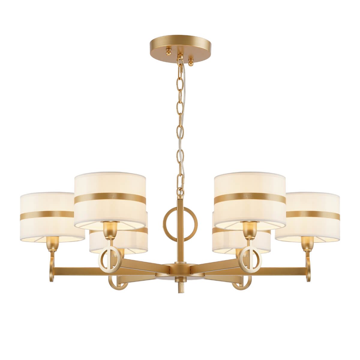 Несравненная модель 2634-6P от немецкой компании Favourite относится к коллекции Mateo и отлично подойдет для установки на потолок спальни, оформленной в дизайнерском стиле. Подвесная люстра Favourite Mateo 2634-6P с цилиндрическими плафонами осветит помещение площадью 13.3 кв. м. Производитель Favourite рекомендует использовать для устройства лампы накаливания с цоколем E14 и мощностью 40 W. Прибор произведен с использованием материалов: текстиль, металл и ткань и может использоваться для натяжного потолка. Основным цветом товара является Белый и Золотой. Подвесная люстра 2634-6P продается по цене 20100 руб. Торопитесь сделать заказ в интернет-магазине Top Otdelka.