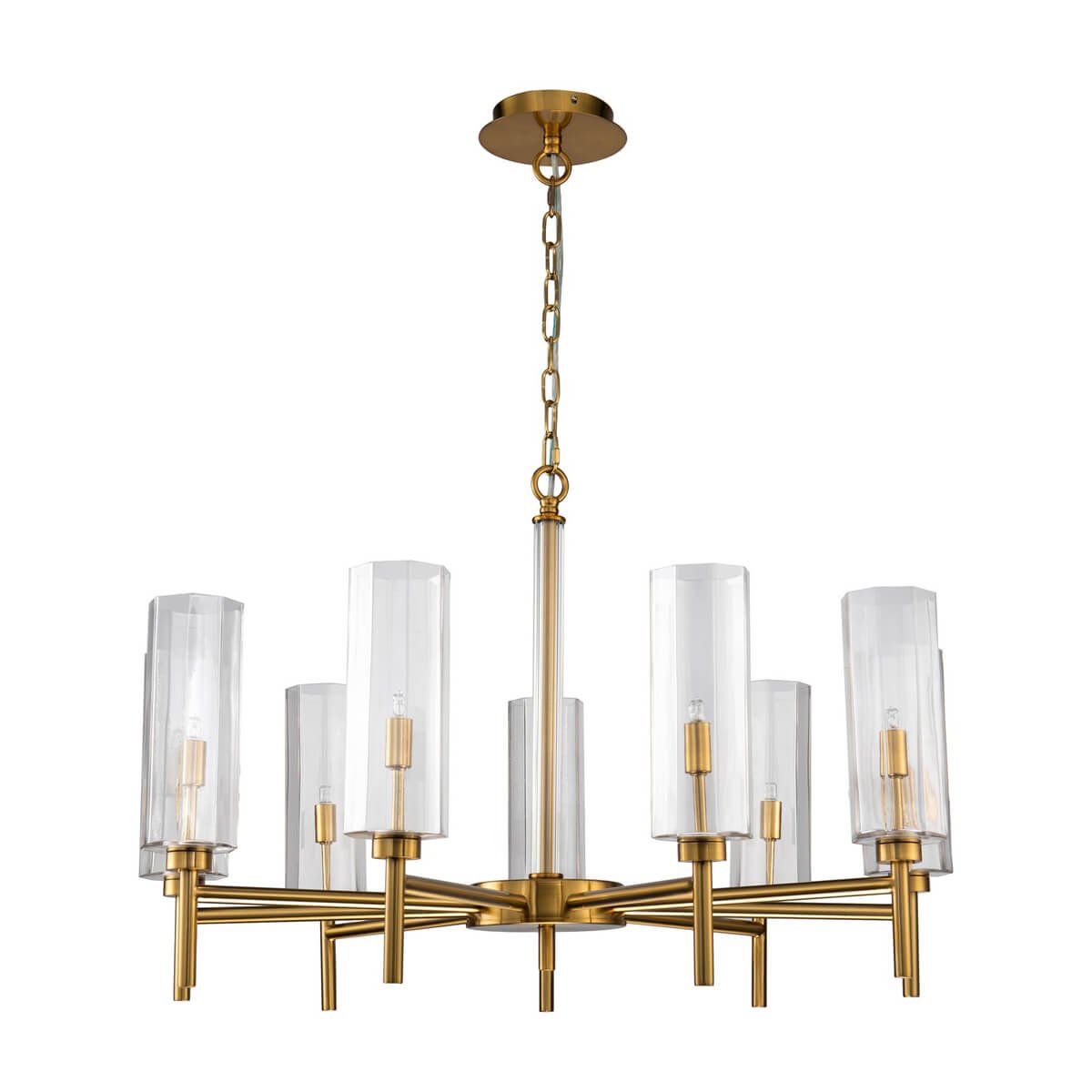 Изумительная модель 2648-9P от немецкой компании Favourite относится к коллекции Gracilis и отлично подойдет для установки на потолок в гостиной, оформленной в современном стиле. Подвесная люстра Favourite Gracilis 2648-9P с цилиндрическими плафонами осветит помещение площадью 20 кв. м. Производитель Favourite рекомендует использовать для устройства галогеновые лампы с цоколем G9 и мощностью 40 W. Прибор произведен с использованием материалов: стекло и металл и может использоваться для натяжного потолка. Основным цветом товара является Латунный и Прозрачный. Подвесная люстра 2648-9P продается по цене 43000 руб. Торопитесь сделать заказ в интернет-магазине Top Otdelka.