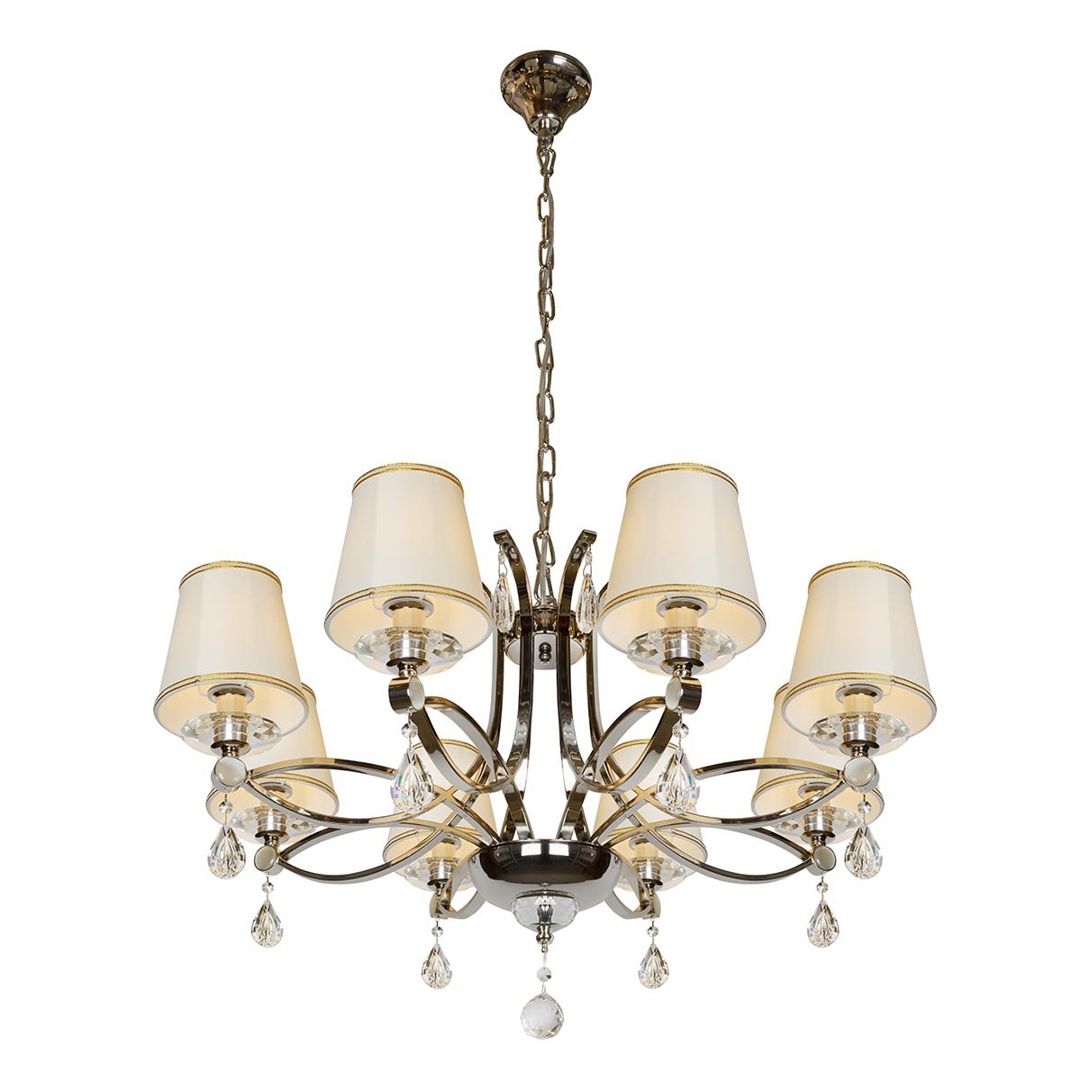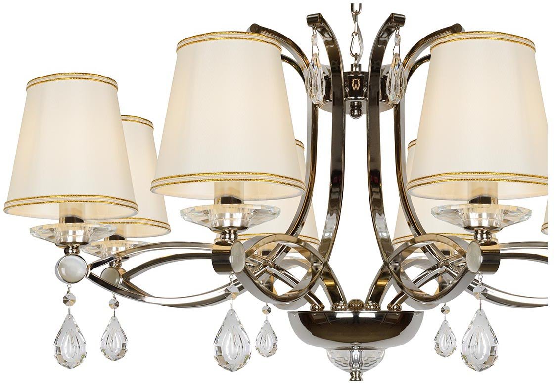 Утонченная модель P7505-8 Nic от итальянской компании ILamp относится к коллекции Cento и отлично подойдет для установки на потолок в гостиной, оформленной в стиле арт-деко. Подвесная люстра iLamp Cento P7505-8 Nic с плафонами-конусами осветит помещение площадью 17.8 кв. м. Производитель ILamp рекомендует использовать для устройства лампы накаливания с цоколем E14 и мощностью 40 W. Прибор произведен с использованием материалов: текстиль, металл и ткань и может использоваться для натяжного потолка. Основным цветом товара является Белый и Никелевый. Подвесная люстра P7505-8 Nic продается по цене 67990 руб. Торопитесь сделать заказ в интернет-магазине Top Otdelka.