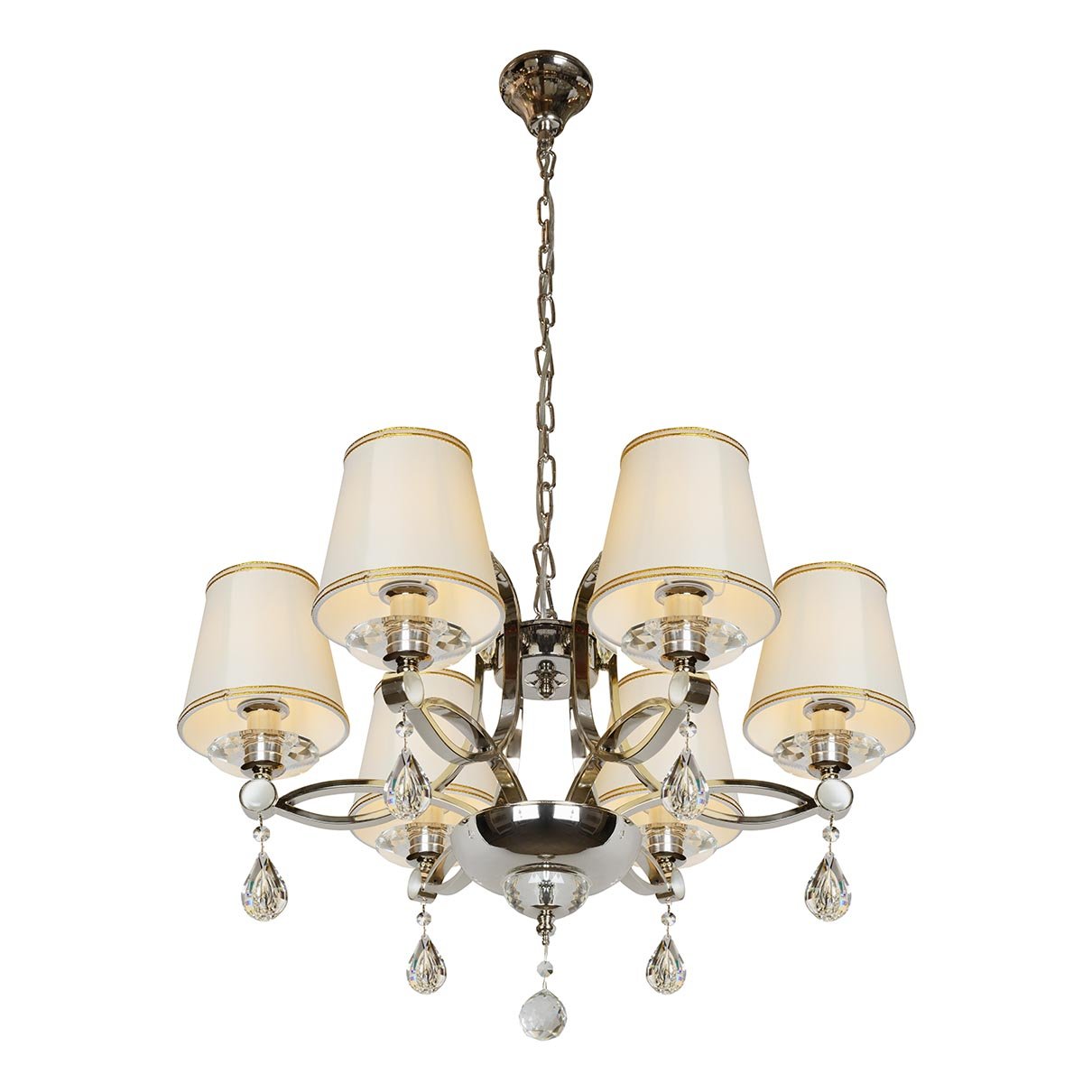 Выдающаяся модель P7505-6 Nic от итальянской компании ILamp относится к коллекции Cento и отлично подойдет для установки на потолок спальни, оформленной в стиле арт-деко. Подвесная люстра iLamp Cento P7505-6 Nic с плафонами-конусами осветит помещение площадью 13.3 кв. м. Производитель ILamp рекомендует использовать для устройства лампы накаливания с цоколем E14 и мощностью 40 W. Прибор произведен с использованием материалов: текстиль, металл и ткань и может использоваться для натяжного потолка. Основным цветом товара является Белый и Никелевый. Подвесная люстра P7505-6 Nic продается по цене 52890 руб. Торопитесь сделать заказ в интернет-магазине Top Otdelka.