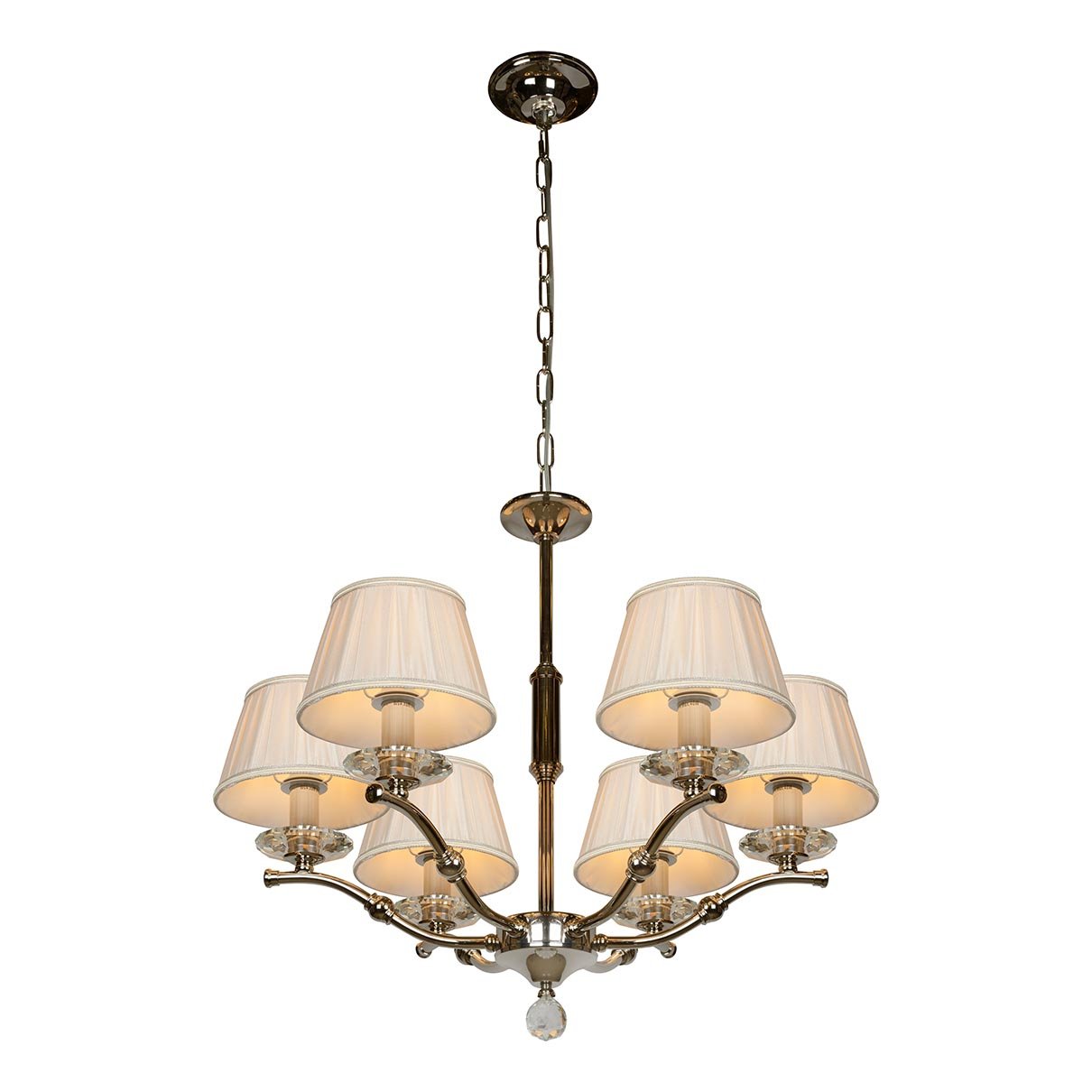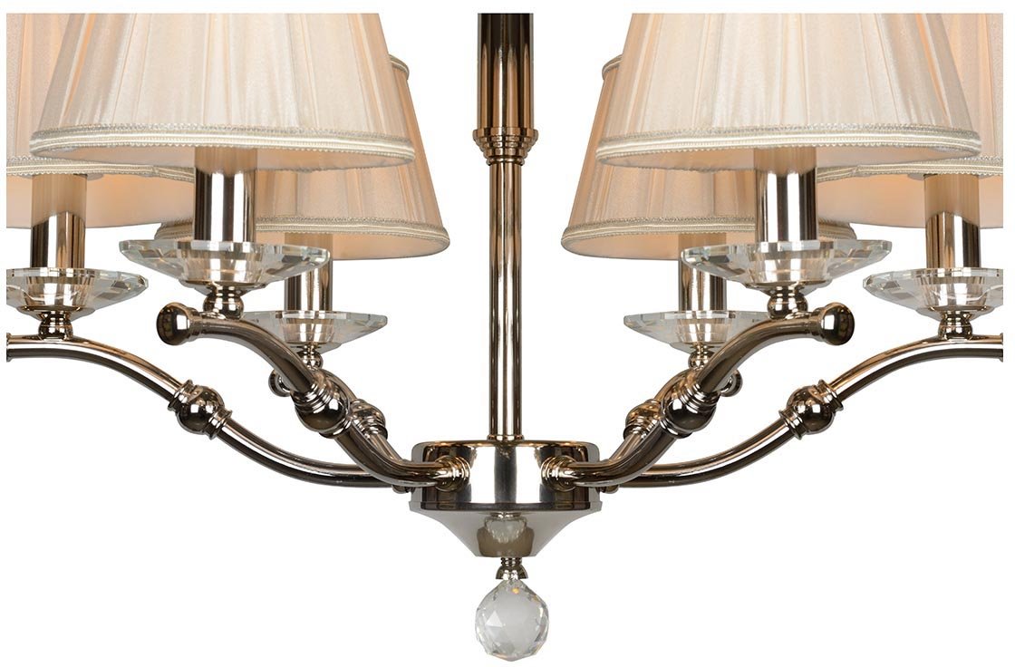 Изумительная модель 85125/6 CR от итальянской компании ILamp относится к коллекции Vivaldi и отлично подойдет для установки на потолок спальни, оформленной в стиле модерн. Подвесная люстра iLamp Vivaldi 85125/6 CR с плафонами-конусами осветит помещение площадью 13.3 кв. м. Производитель ILamp рекомендует использовать для устройства лампы накаливания с цоколем E14 и мощностью 40 W. Прибор произведен с использованием материалов: текстиль, металл и ткань и может использоваться для натяжного потолка. Основным цветом товара является Белый и Серебристо-стальной. Подвесная люстра 85125/6 CR продается по цене 44990 руб. Торопитесь сделать заказ в интернет-магазине Top Otdelka.