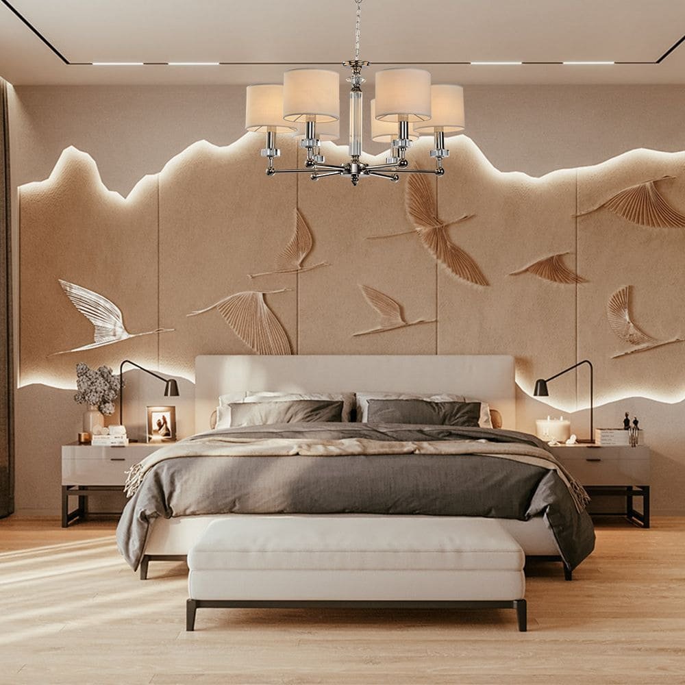 Особенная модель LH1049/6H-NK-WT от испанской компании Lumien Hall относится к коллекции Саленто и отлично подойдет для установки на потолок в гостиной, оформленной в классическом стиле. Подвесная люстра Lumien Hall Саленто LH1049/6H-NK-WT с цилиндрическими плафонами осветит помещение площадью 13.3 кв. м. Производитель Lumien Hall рекомендует использовать для устройства лампы накаливания с цоколем E14 и мощностью 40 W. Прибор произведен с использованием материалов: текстиль, металл и ткань и может использоваться для натяжного потолка. Основным цветом товара является Белый и Никелевый. Подвесная люстра LH1049/6H-NK-WT продается по цене 16384 руб. Торопитесь сделать заказ в интернет-магазине Top Otdelka.