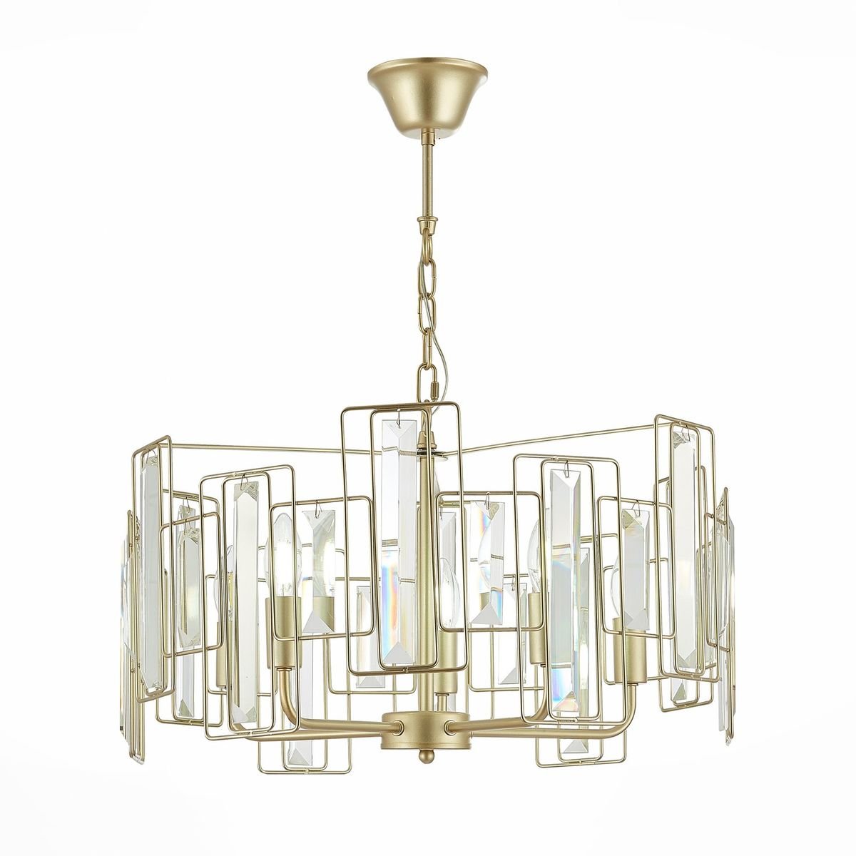 Изысканная модель SLE103403-05 от итальянской компании Evoluce относится к коллекции Giano и отлично подойдет для установки на потолок спальни, оформленной в стиле модерн. Подвесная люстра Evoluce Giano SLE103403-05 с цилиндрическими плафонами осветит помещение площадью 11.1 кв. м. Производитель Evoluce рекомендует использовать для устройства лампы накаливания с цоколем E14 и мощностью 40 W. Прибор произведен с использованием материалов: хрусталь и металл и может использоваться для натяжного потолка. Основным цветом товара является Шампань и Прозрачный. Подвесная люстра SLE103403-05 продается по цене 17620 руб. Торопитесь сделать заказ в интернет-магазине Top Otdelka.