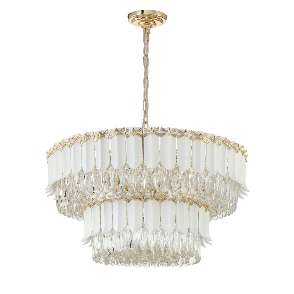 Потрясающая модель 2734-12P от немецкой компании Favourite относится к коллекции Frons и отлично подойдет для установки на потолок в гостиной, оформленной в стиле арт-деко. Подвесная люстра Favourite Frons 2734-12P с декоративными плафонами осветит помещение площадью 26.7 кв. м. Производитель Favourite рекомендует использовать для устройства лампы накаливания с цоколем E14 и мощностью 40 W. Прибор произведен с использованием материалов: керамика, металл и хрусталь и может использоваться для натяжного потолка. Основным цветом товара является Белый, Золотой и Прозрачный. Подвесная люстра 2734-12P продается по цене 94900 руб. Торопитесь сделать заказ в интернет-магазине Top Otdelka.