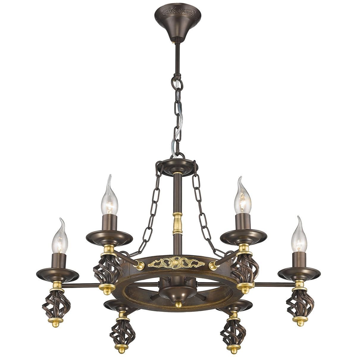 Утонченная модель 536-723-06 от итальянской компании Velante относится к коллекции 536 и отлично подойдет для установки на потолок спальни, оформленной в замковом стиле. Подвесная люстра Velante 536-723-06 без плафонов осветит помещение площадью 20 кв. м. Производитель Velante рекомендует использовать для устройства лампы накаливания с цоколем E14 и мощностью 60 W. Прибор произведен с использованием материала: металл и может использоваться для натяжного потолка. Основным цветом товара является Коричневый. Подвесная люстра 536-723-06 продается по цене 21337 руб. Торопитесь сделать заказ в интернет-магазине Top Otdelka.