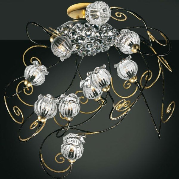 Уникальная модель 6820/P10 V2418 от итальянской компании MM Lampadari относится к коллекции Ricciolo и отлично подойдет для установки на потолок в гостиной, оформленной в стиле флористика. Подвесная люстра MM Lampadari Ricciolo 6820/P10 V2418 с плафонами в форме цветов осветит помещение площадью 50 кв. м. Производитель MM Lampadari рекомендует использовать для устройства галогеновые лампы с цоколем G9 и мощностью 40 W. Прибор произведен с использованием материалов: стекло и металл и может использоваться для натяжного потолка. Основным цветом товара является Черный, Золотой и Прозрачный. Подвесная люстра 6820/P10 V2418 продается по цене по запросу. Торопитесь сделать заказ в интернет-магазине Top Otdelka.