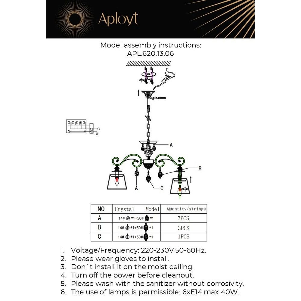 Роскошная модель APL.620.13.06 от польской компании Aployt относится к коллекции Madlen и отлично подойдет для установки на потолок в гостиной, оформленной в классическом стиле. Подвесная люстра Aployt Madlen APL.620.13.06 с плафонами-конусами осветит помещение площадью 24 кв. м. Производитель Aployt рекомендует использовать для устройства лампы накаливания с цоколем E14 и мощностью 60 W. Прибор произведен с использованием материалов: текстиль, металл и ткань и может использоваться для натяжного потолка. Основным цветом товара является Бежевый и Латунный. Подвесная люстра APL.620.13.06 продается по цене 21120 руб. Торопитесь сделать заказ в интернет-магазине Top Otdelka.
