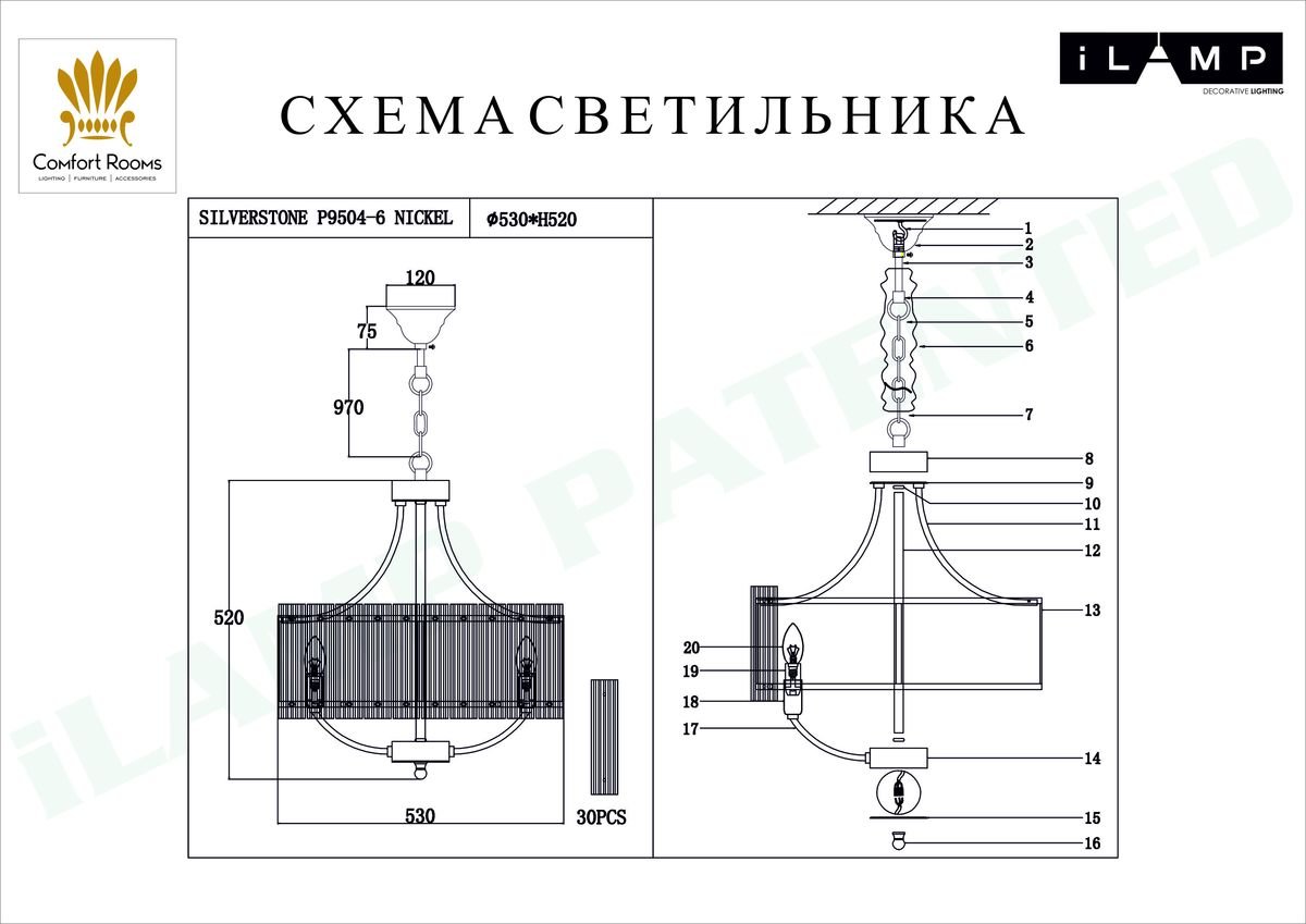 Великолепная модель P9504-6 NIC от итальянской компании ILamp относится к коллекции Silverstone и отлично подойдет для установки на потолок кухни, оформленной в американском стиле. Подвесная люстра iLamp Silverstone P9504-6 NIC с цилиндрическими плафонами осветит помещение площадью 16 кв. м. Производитель ILamp рекомендует использовать для устройства лампы накаливания с цоколем E14 и мощностью 40 W. Прибор произведен с использованием материалов: стекло и сталь и может использоваться для натяжного потолка. Основным цветом товара является Никелевый и Прозрачный. Подвесная люстра P9504-6 NIC продается по цене 50690 руб. Торопитесь сделать заказ в интернет-магазине Top Otdelka.
