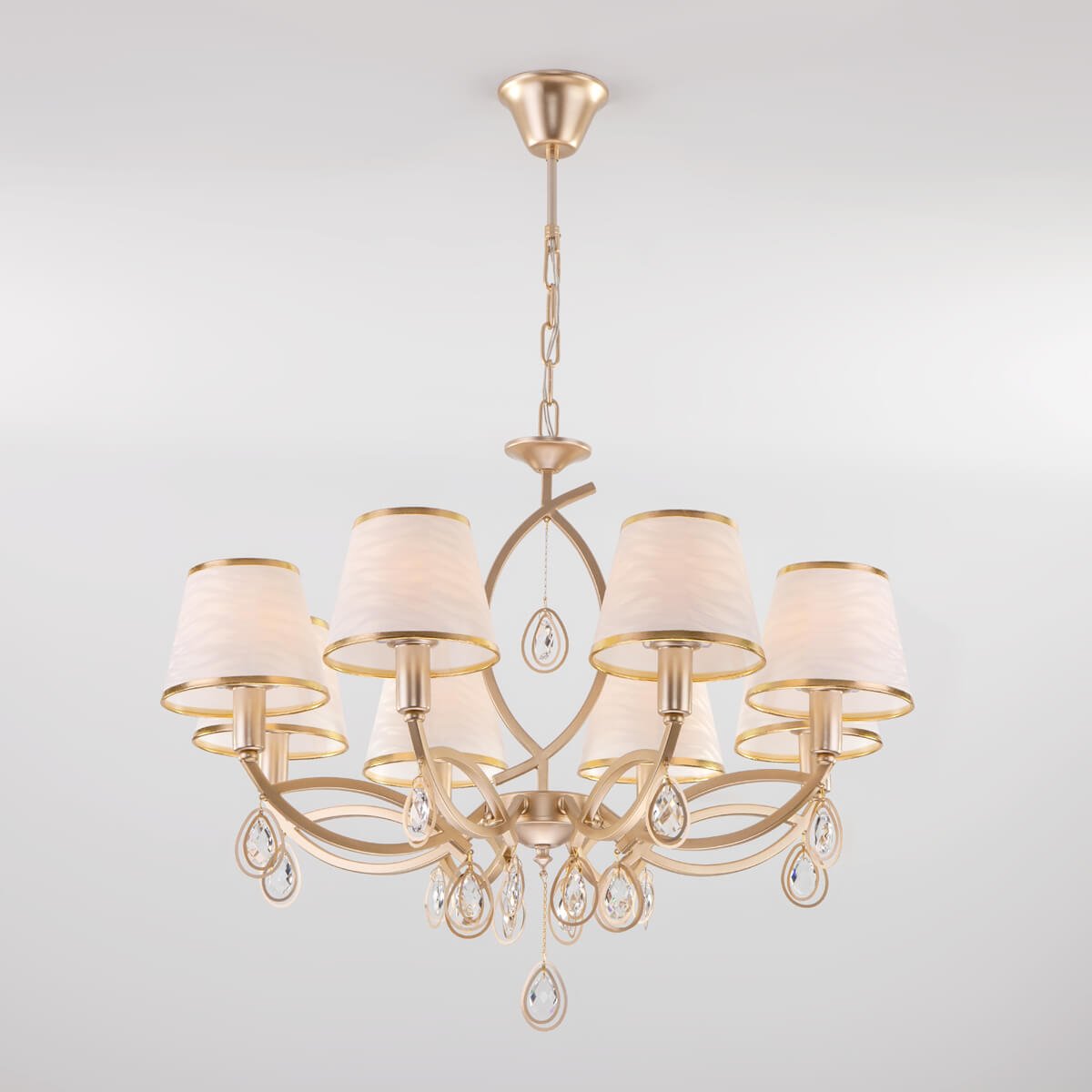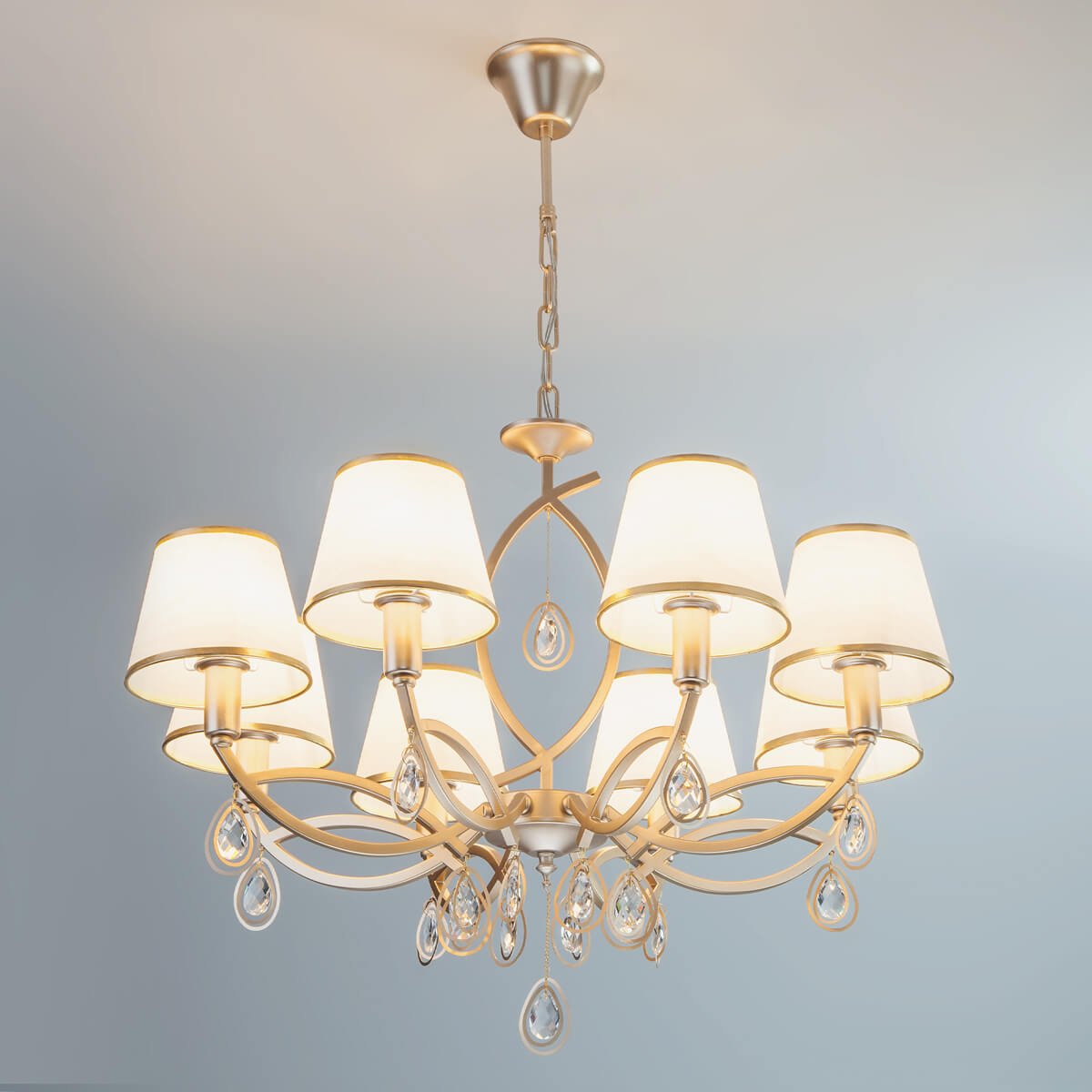 Роскошная модель 60091/8 перламутровое золото от российской компании Eurosvet относится к коллекции Salita и отлично подойдет для установки на потолок в гостиной, оформленной в стиле арт-деко. Подвесная люстра Eurosvet 60091/8 перламутровое золото с плафонами-конусами осветит помещение площадью 21.3 кв. м. Производитель Eurosvet рекомендует использовать для устройства лампы накаливания с цоколем E14 и мощностью 40 W. Прибор произведен с использованием материалов: текстиль, металл и ткань и может использоваться для натяжного потолка. Основным цветом товара является Белый и Золотой. Подвесная люстра 60091/8 перламутровое золото продается по цене 22900 руб. Торопитесь сделать заказ в интернет-магазине Top Otdelka.