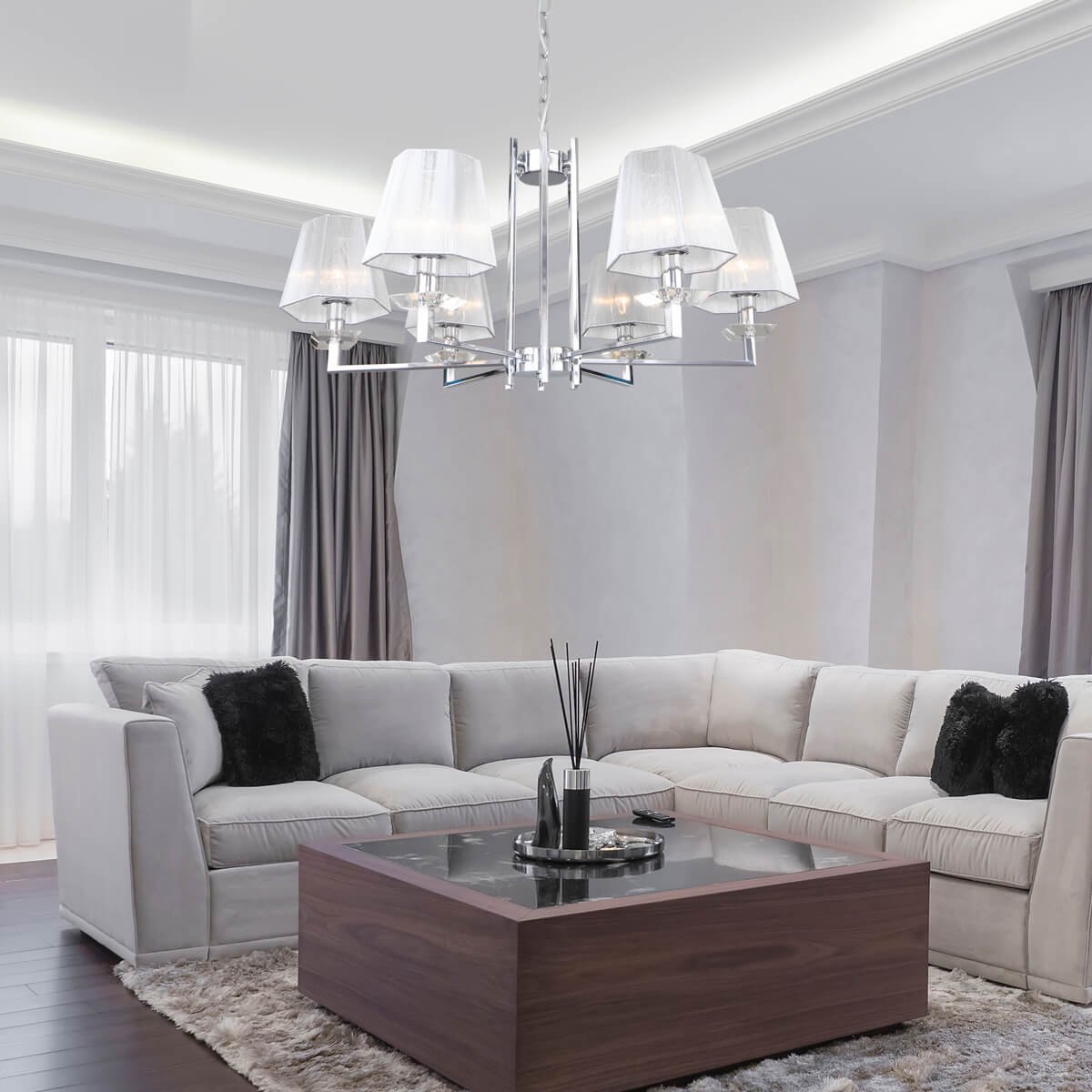 Изумительная модель 60125/6 хром Smart от российской компании Eurosvet относится к коллекции Alegria и отлично подойдет для установки на потолок спальни, оформленной в современном стиле. Подвесная люстра Eurosvet Alegria 60125/6 хром Smart с пирамидальными плафонами осветит помещение площадью 13.3 кв. м. Прибор произведен с использованием материалов: текстиль, металл и ткань и может использоваться для натяжного потолка. Основным цветом товара является Серебряный и Серебристо-стальной. Подвесная люстра 60125/6 хром Smart продается по цене 26800 руб. Торопитесь сделать заказ в интернет-магазине Top Otdelka.