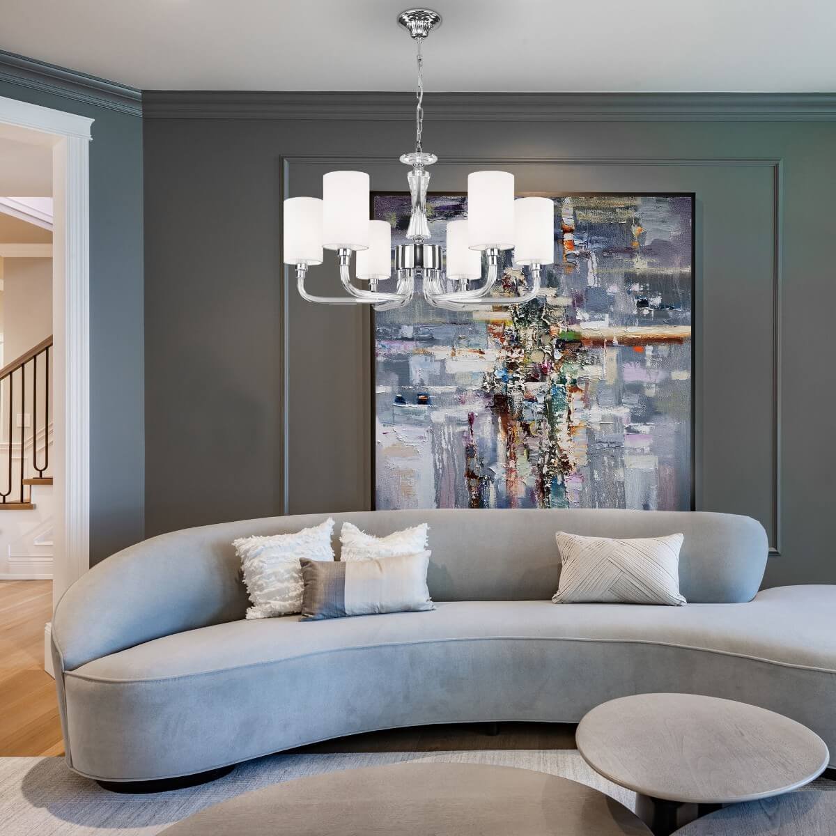 Особенная модель 60120/6 хром Smart от российской компании Eurosvet относится к коллекции Catania и отлично подойдет для установки на потолок спальни, оформленной в американском стиле. Подвесная люстра Eurosvet Catania 60120/6 хром Smart с цилиндрическими плафонами осветит помещение площадью 13.3 кв. м. Производитель Eurosvet рекомендует использовать для устройства лампы накаливания с цоколем E14 и мощностью 40 W. Прибор произведен с использованием материалов: текстиль, металл и ткань и может использоваться для натяжного потолка. Основным цветом товара является Белый и Серебристо-стальной. Подвесная люстра 60120/6 хром Smart продается по цене 27500 руб. Торопитесь сделать заказ в интернет-магазине Top Otdelka.