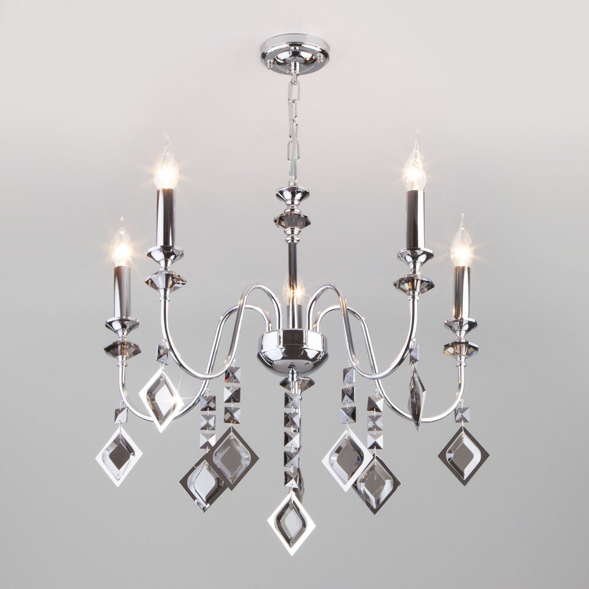 Прекрасная модель 10120/5 хром/дымчатый хрусталь Strotskis Smart от российской компании Eurosvet относится к коллекции Telao и отлично подойдет для установки на потолок спальни, оформленной в классическом стиле. Подвесная люстра Eurosvet Telao 10120/5 хром/дымчатый хрусталь Strotskis Smart без плафонов осветит помещение площадью 16.7 кв. м. Производитель Eurosvet рекомендует использовать для устройства лампы накаливания с цоколем E14 и мощностью 60 W. Прибор произведен с использованием материалов: хрусталь и металл и может использоваться для натяжного потолка. Основным цветом товара является Хромовый и Серебристо-стальной. Подвесная люстра 10120/5 хром/дымчатый хрусталь Strotskis Smart продается по цене 15200 руб. Торопитесь сделать заказ в интернет-магазине Top Otdelka.