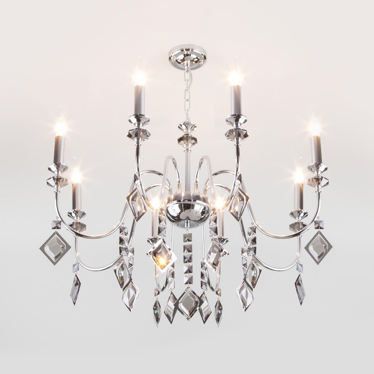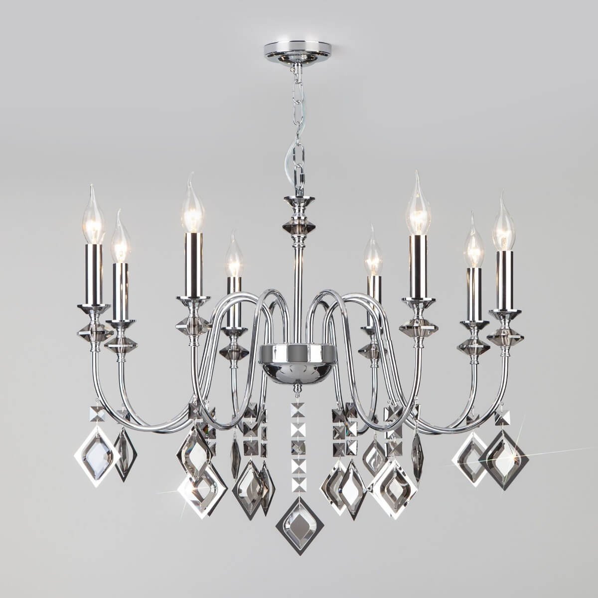 Неподражаемая модель 10120/8 хром/дымчатый хрусталь Strotskis Smart от российской компании Eurosvet относится к коллекции Telao и отлично подойдет для установки на потолок в гостиной, оформленной в классическом стиле. Подвесная люстра Eurosvet Telao 10120/8 хром/дымчатый хрусталь Strotskis Smart без плафонов осветит помещение площадью 26.7 кв. м. Производитель Eurosvet рекомендует использовать для устройства лампы накаливания с цоколем E14 и мощностью 60 W. Прибор произведен с использованием материалов: хрусталь и металл и может использоваться для натяжного потолка. Основным цветом товара является Хромовый и Серебристо-стальной. Подвесная люстра 10120/8 хром/дымчатый хрусталь Strotskis Smart продается по цене 23100 руб. Торопитесь сделать заказ в интернет-магазине Top Otdelka.