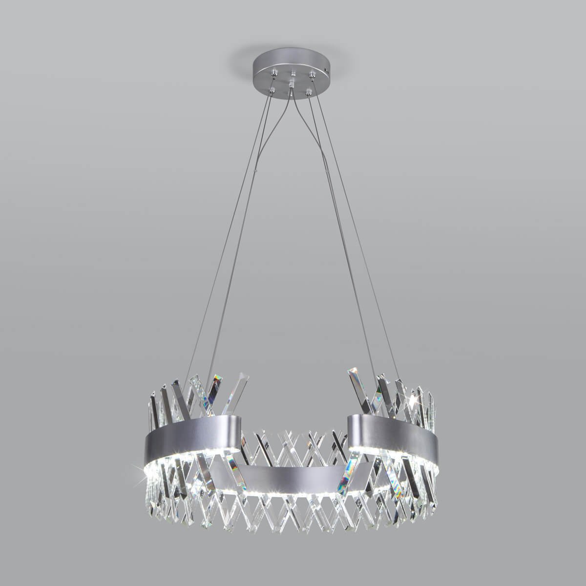 Исключительная модель 432/1 Strotskis от российской компании Bogates относится к коллекции Parete и отлично подойдет для установки на потолок спальни, оформленной в стиле модерн. Осветительный элемент встроен в конструкцию и не требует приобретения дополнительных лампочек. Прибор произведен с использованием материалов: хрусталь и металл и может использоваться для натяжного потолка. В комплект поставки входит пульт дистанционного управления. Основным цветом товара является Серебряный и Прозрачный. Подвесная светодиодная люстра 432/1 Strotskis продается по цене 44500 руб. Торопитесь сделать заказ в интернет-магазине Top Otdelka.