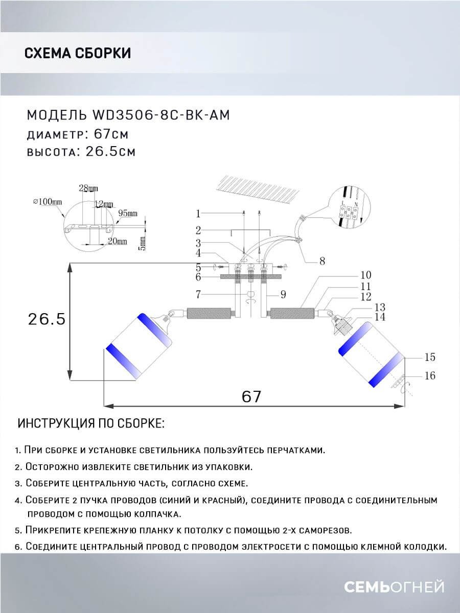 Невероятная модель WD3506/8C-BK-AM от российской компании Seven Fires относится к коллекции Kaleri и отлично подойдет для установки на низкий потолок в гостиной, оформленной в скандинавском стиле. Потолочная люстра Seven Fires Kaleri WD3506/8C-BK-AM с прямоугольными плафонами осветит помещение площадью 24 кв. м. Производитель Seven Fires рекомендует использовать для устройства лампы накаливания с цоколем E27 и мощностью 60 W. Прибор произведен с использованием материалов: дерево, металл и стекло и может использоваться для натяжного потолка. Основным цветом товара является Шампань и Черный. Потолочная люстра WD3506/8C-BK-AM продается по цене 7340 руб. Торопитесь сделать заказ в интернет-магазине Top Otdelka.