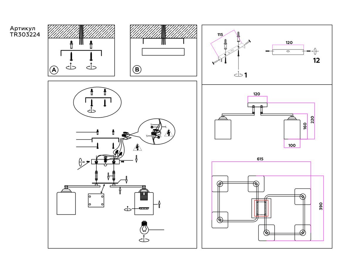 Изысканная модель TR303224 от российской компании Ambrella light относится к коллекции Traditional Modern и отлично подойдет для установки на низкий потолок спальни, оформленной в стиле модерн. Потолочная люстра Ambrella light Traditional Modern TR303224 с прямоугольными плафонами осветит помещение площадью 18 кв. м. Производитель Ambrella light рекомендует использовать для устройства лампы накаливания с цоколем E27 и мощностью 60 W. Прибор произведен с использованием материалов: стекло и металл и может использоваться для натяжного потолка. Основным цветом товара является Белый и Черный. Потолочная люстра TR303224 продается по цене 9337 руб. Торопитесь сделать заказ в интернет-магазине Top Otdelka.